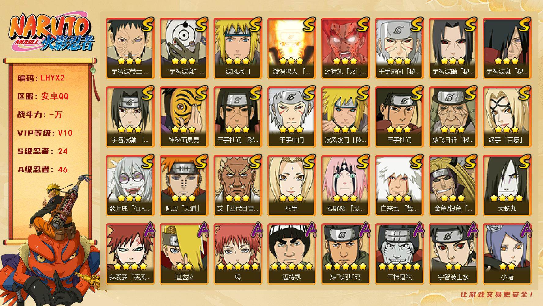 - 火影忍者手游/QQ/安卓QQ401-500区/401区百豪之印
