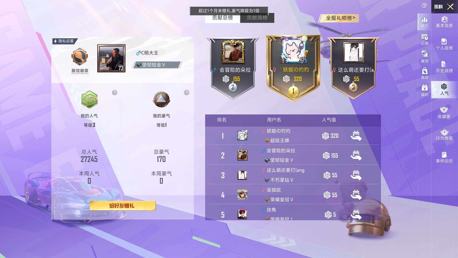 - PX_2097152- 安卓手Q-7王牌印记-7粉装-4特效枪-0载具-65417热力值-155套装-211枪皮-0卓越印记-0传奇印记 【7粉装】,梦幻火箭,天使彩虹糖,深渊皇后,筑梦精灵,寒光使者,暗夜鎏金,蜜桃特工 【4特效枪】SCAR-L-甜梦小狐-6级 SCAR-L-青春物语-1级 M416-至情至圣-9级 Kar98K-巳巳如意-5级 【5稀有紫装】,萌熊伴侣背包(3级),浪漫天命,