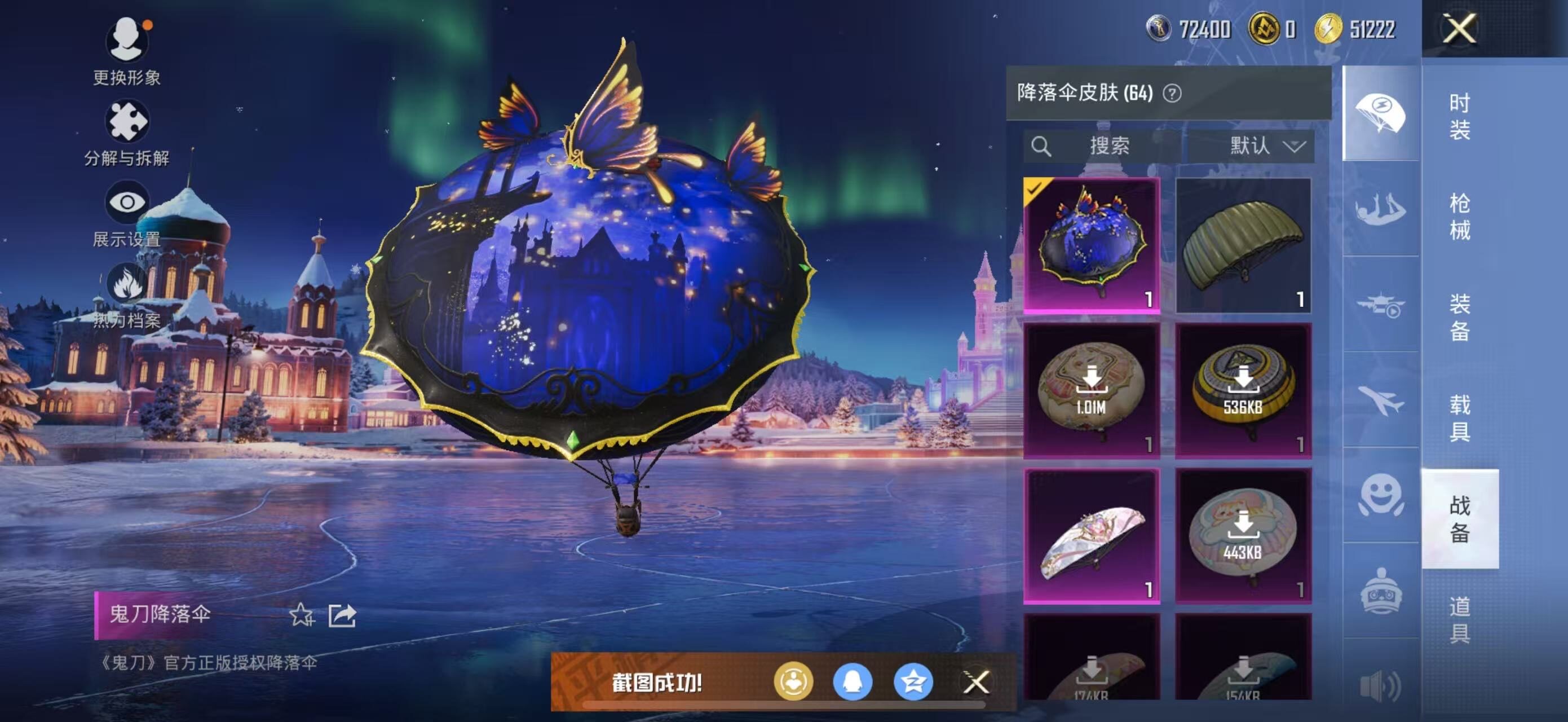 【粉色降落伞】:甜心宝贝降落伞,神秘黑猫降落伞,潮汐统领降落伞,锦绣火鲤降落伞,阿狸红降落伞,童趣迷兔降落伞,星之彼岸降落伞,相思残雪降落伞,暗夜玫瑰降落伞,林间仙鹿降落伞,蓝莓炮弹降落伞,焦糖拿铁降落伞,橘柚倾心降落伞,环太平洋降落伞,彩虹甜喵降落伞,旋转彩虹降落伞,海螺星光降落伞,飒粉甜心降落伞,蜜语绒猫降落伞,精灵梦叶罗丽降落伞,创世·救赎降落伞,鬼刀降落伞,星穹咏叹调降落伞