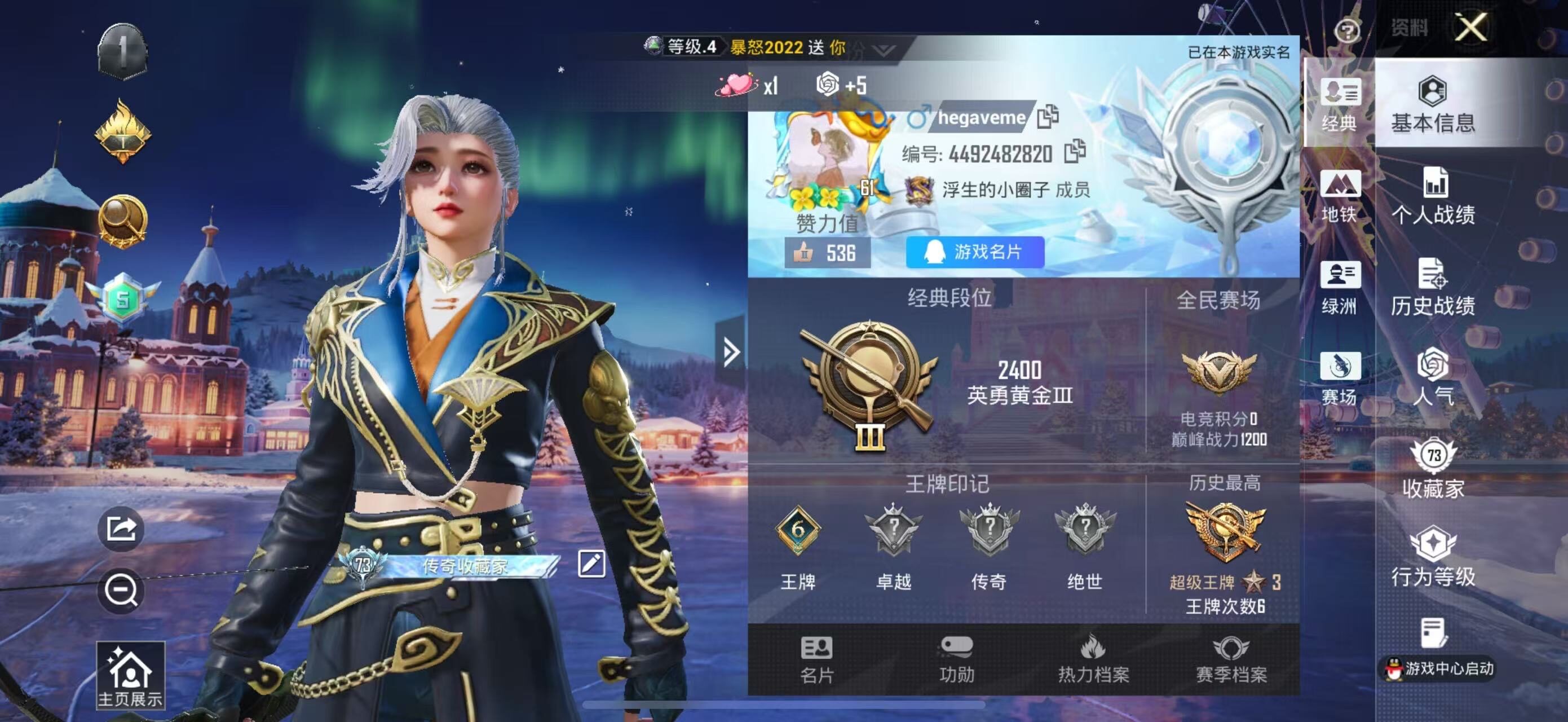 - PX_2090346-实名: 可修改 时装数: 662 载具数: 7 枪械数: 215 战备数: 150 神级装扮: 沙丘之主-图卡盟【3级】,圣域龙灵-瑞拉【1级】 热门装扮: 梦幻火箭(新101),幻影战神,呆萌铁蟹,深海小丑鱼,星之信仰,金风玉露,浪漫波比,天使彩虹糖,放客神游,水曜玄武,木曜青龙,金曜白虎,金属狂野,缤纷油彩,绚金战神,炙焰红王,冰霜白皇,童趣迷兔,雪国幻梦,相思残雪,馨动