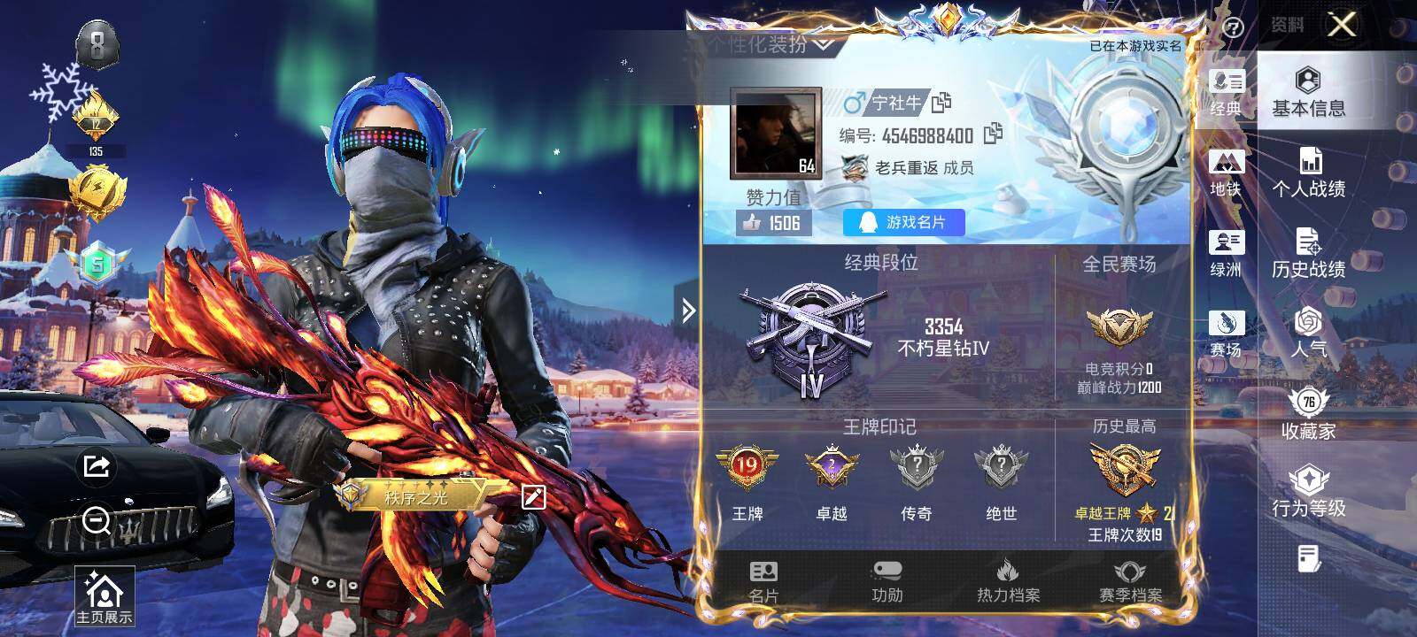 - [11518850]V7 1典藏 6传说 124英雄 285皮肤 可修改实名 优质装备:鸣剑·曳影,冠军飞将,炽阳神光,一念神魔,地狱火,淬星耀世,超时空战士-狄仁杰 珍宝阁皮:蔷薇恋人,玩趣恶龙 限定皮:神威(电光马子),遇见飞天,高山流水,五谷丰年,冰锋战神,梁祝,逐梦之星,李小龙,逐梦之影,朱雀志(守约年限),孙行者 史诗皮:星界战将,苍穹之光,电玩小子(小书包),白龙吟,黄金分割率,千年之狐,江河有灵,蒙恬荣光圣徽,偶像歌手,魅语,电玩·爆裂旋风,暗夜猫娘,乱世虎臣,修罗,摇滚巨星,水果甜心,绅士熊喵,天才门将,星夜王子,心灵骇客,时之奇旅-安琪拉,德古拉伯爵,暗隐猎兽者,幽灵船长,鬼剑武藏,暗渊魔法,心灵战警,舞动绿茵,地狱岩魂,纤云弄巧,拒霜思,缤纷独角兽,乘风破浪,逐浪之夏,水晶猎龙者,曙光守护者,金属风暴,原初追逐者,圣诞狂欢,圣诞恋歌,鹰眼统帅,魅力维加斯,黎明之约,无心,未来纪元-赵云