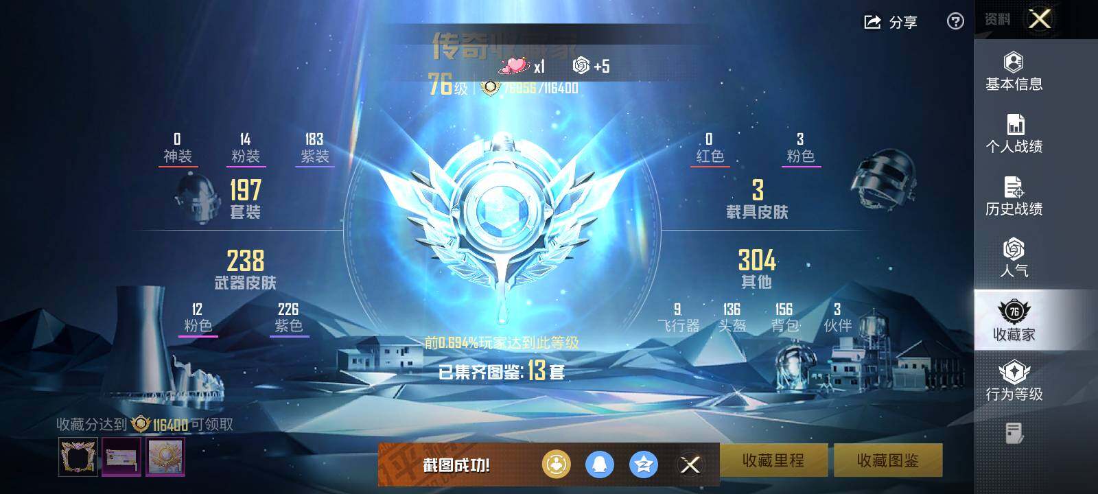 - PX_2094365- 苹果手Q-12王牌印记-9粉装-10特效枪-3载具-79640热力值-171套装-235枪皮-4卓越印记-3传奇印记 【9粉装】,梦幻火箭,新星烈龙,洛天依,冷漠罗丽,雪月幻音,极致幻想,天禅智恒,守护天翼,心之恋语 【10特效枪】AKM-炫紫旋律-5级 M416-心之恋语-7级 Kar98K-巳巳如意-5级 Kar98K-伏魔团-4级 AWM-花间之火-5级 DP-28-