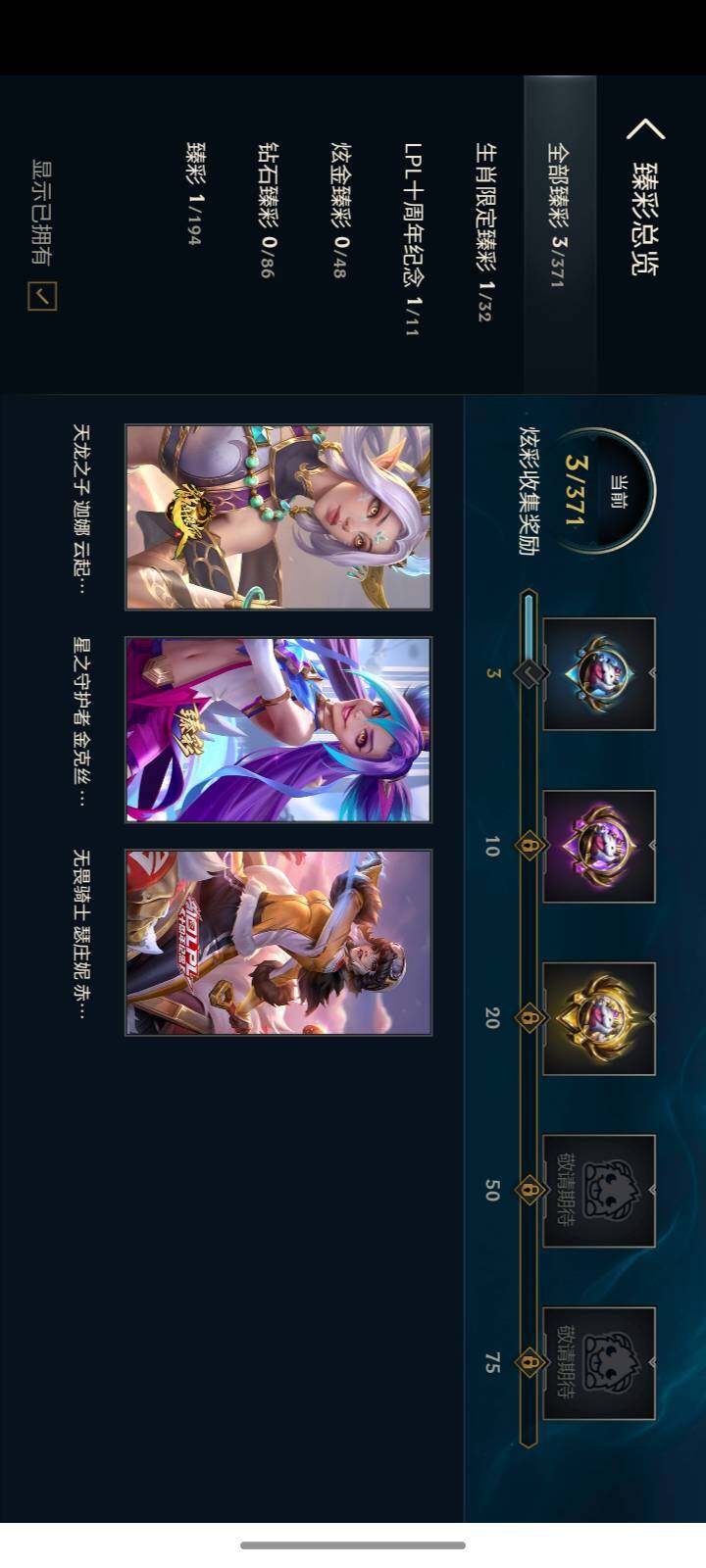 【臻彩皮肤】:天龙之子迦娜云起龙骧,无畏骑士瑟庄妮赤子初心,星之守护者金克丝黑洞