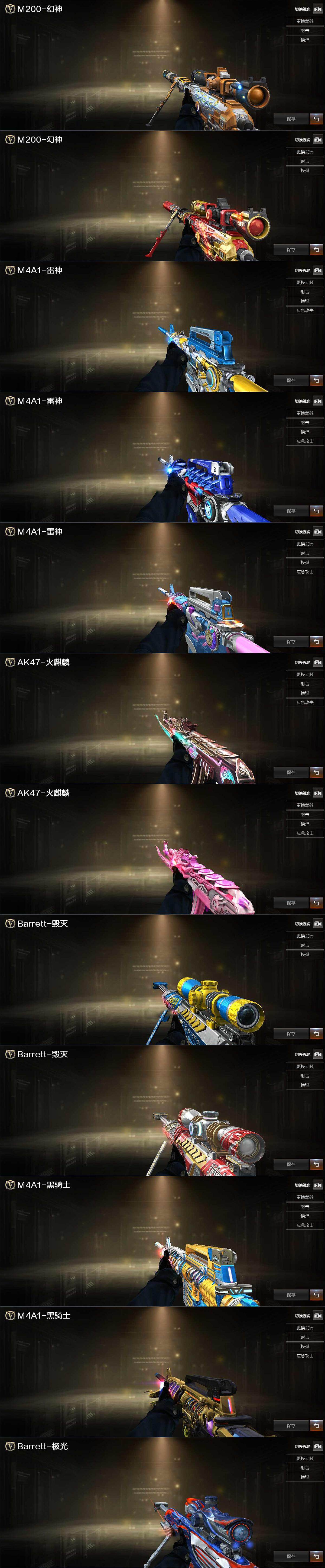 【音效卡】:M200-幻神音效卡,M4A1-黑骑士音效卡,Barrett-毁灭音效卡