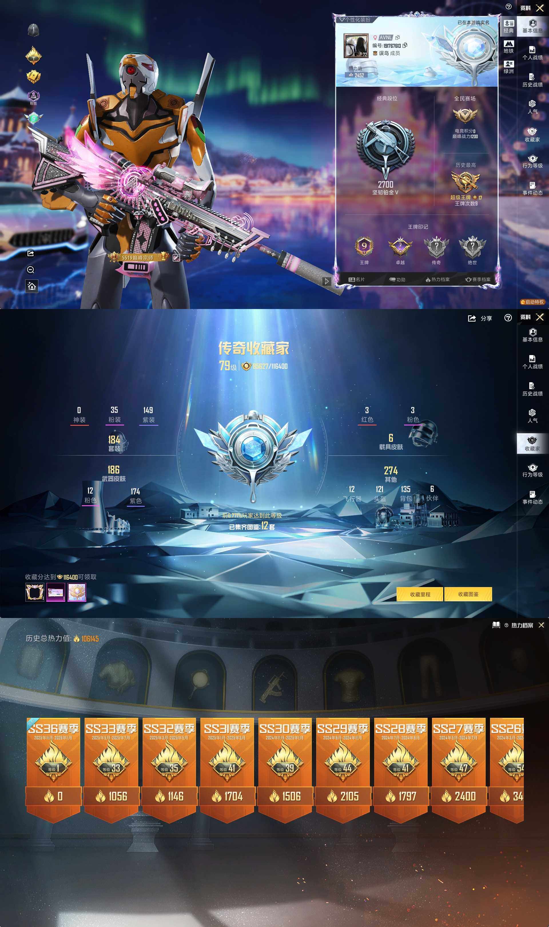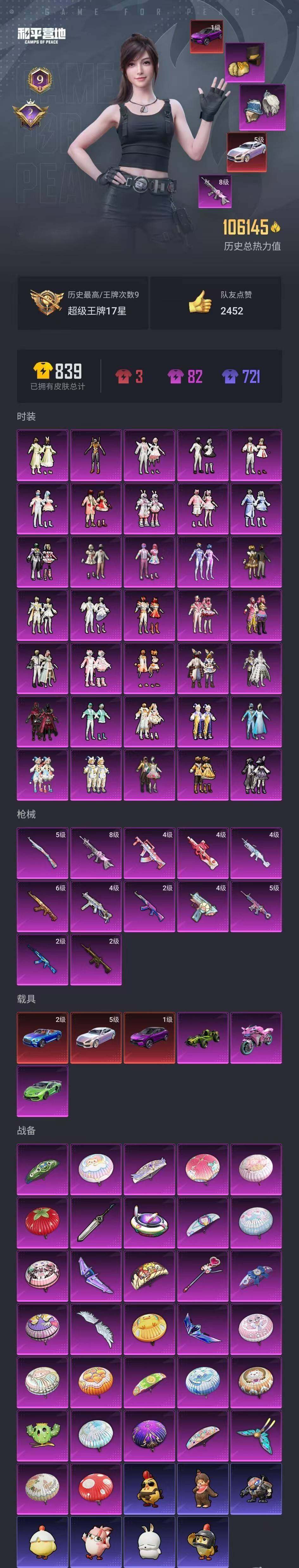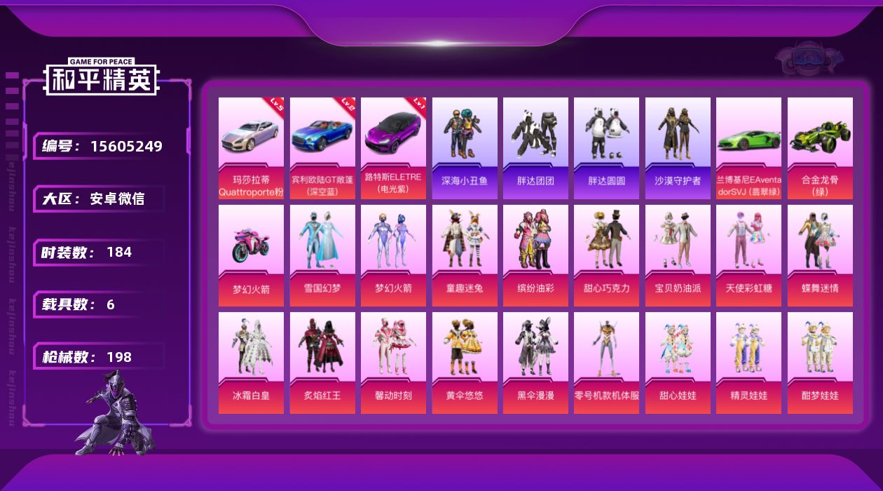 [15605249]送手机!安卓 微信-35粉装-12特效枪-6载具-8粉色飞行器-106145热力值-9王牌印记-184套装-198枪皮