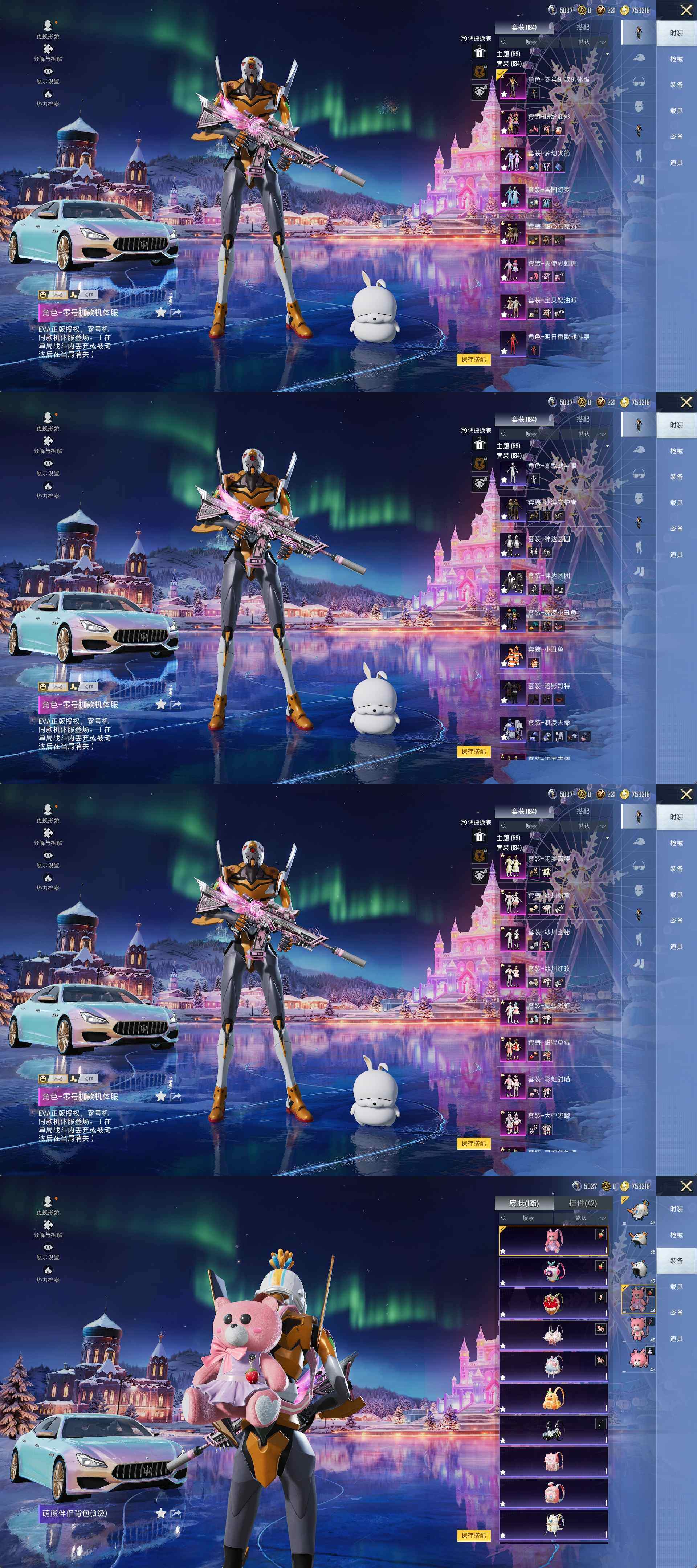 【粉色套装】:粉装-甜心巧克力,粉装-宝贝奶油派,粉装-天使彩虹糖,粉装-雪国幻梦,粉装-蝶舞迷情,粉装-梦幻火箭,粉装-缤纷油彩,粉装-冰霜白皇,粉装-童趣迷兔,粉装-炙焰红王,粉装-馨动时刻,粉装-黄伞悠悠,粉装-黑伞漫漫,角色-零号机款机体服,粉装-甜心娃娃,粉装-精灵娃娃,粉装-酣梦娃娃,粉装-焦糖拿铁,粉装-薄荷物语,粉装-橘柚倾心,粉装-筑梦精灵,粉装-甜梦小狐,粉装-圣光天使,粉装-霁雪冰心,粉装-灵感创作师,粉装-太空嘟嘟,粉装-彩虹甜喵,粉装-甜蜜草莓,粉装-旋转彩虹,粉装-冰川粉黛,粉装-冰川幽秘,粉装-冰川红玫,粉装-霞光圣骑,粉装-寒光使者,粉装-闲梦青缨