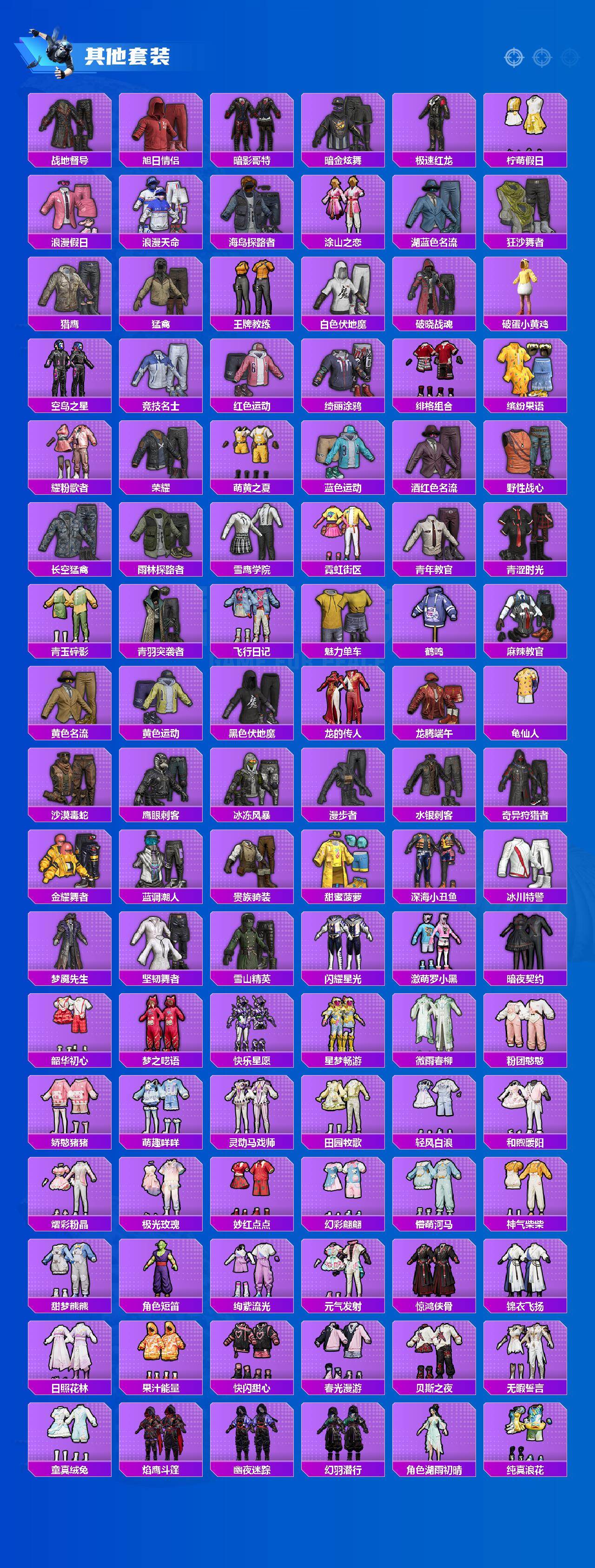 【粉色套装】:粉装-梦幻火箭,粉装-星之信仰,粉装-冰霜白皇,粉装-飒粉甜心,角色-呆萌星弥,角色-小可学妹,角色-茉莉星,粉装-莲影清波,角色-美雪,粉装-未来领航者