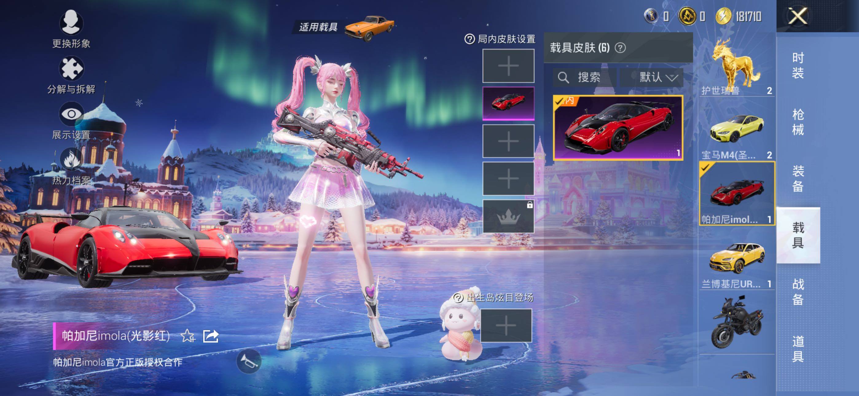 兰博基尼URUS(明艳黄),仰望U7先锋版(阿盖尔紫),宝马M4(圣保罗黄),帕加尼imola(光影红),星梦玉骢,护世瑞兽
