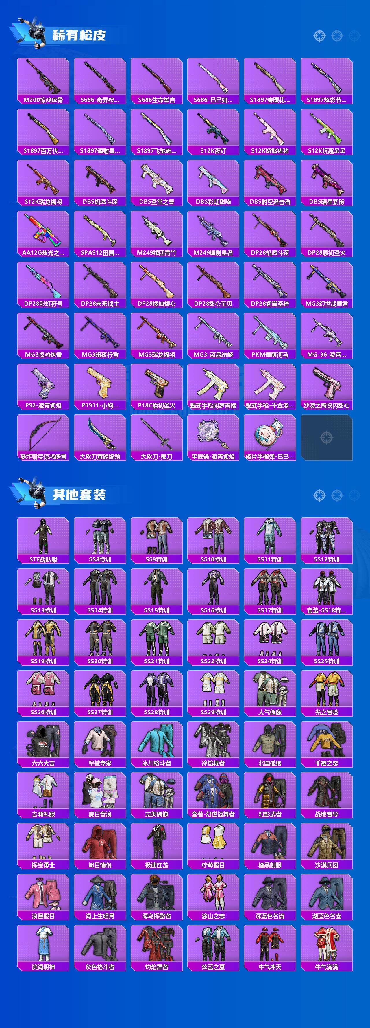 - [14511831]可二次【店主推荐捡漏号!可直接换绑】安卓 微信-15粉装-23特效枪-6载具-10粉色飞行器-104443热力值-11王牌印记-207套装-311枪皮【热门品类】:粉装-梦幻火箭,套装-浪漫天命,套装-都市猎人,套装-深海小丑鱼,套装-小丑鱼,角色-军刀雅典娜,套装-忍者信条,套装-暗影哥特,角色-Mark.06,角色-六号稻草人,熔岩游骑兵连帽夹克【粉色载具】:兰博基尼Estoque(银翼灰),宾利BATUR(极速紫),宾利添越(浅瞪羚棕),幽澜尊爵(静谧蓝),黑曜夜骑,冰绡玉鳞【粉色套装】:粉装-幻影战神,粉装-甜心巧克力,粉装-宝贝奶油派,粉装-天使彩虹糖,粉装-蝶舞迷情,粉装-梦幻火箭,粉装-星之彼岸,角色-复仇流浪者,角色-阿尔茜,粉装-闲梦青缨,角色-圣堂之誓,角色-烟云彩露,角色-美雪,角色-萨利娅,角色-荧海星豚【粉色枪皮等级】:AKM-梦之光华(五级),AKM-绿萝繁花(五级),SCAR-L-青春物语(五级),SCAR-L-锦绣绵绵(五级),M416-心之恋语(五级),M416-电玩时刻(五级),GROZA-巴啦啦小魔仙(五级),AUG-星之彼岸(五级),AUG-暖羊咩咩(五级),M762-青锋波束(五级),ARX-无垠阁(四级),UMP45-量子极限(五级),UMP45-宇宙意志(三级),Vector-环太平洋(六级),P90-沙丘之主(三级),Kar98K-巳巳如意(五级),Mk14-甜梦熊击(五级),AMR-智耀战神(四级),DP-28-圣堂之誓(一级),DP-28-豹影疾电(五级),MG3-洛神天依(四级),MG-36-沧焰双生(五级),破片手榴弹-瓶中星球(五级)【粉色枪皮】:AKM-梦之光华,AKM-绿萝繁花,SCAR-L-青春物语,SCAR-L-锦绣绵绵,M416-心之恋语,M416-电玩时刻,GROZA-巴啦啦小魔仙,AUG-星之彼岸,AUG-暖羊咩咩,M762-青锋波束,ARX-无垠阁,UMP45-量子极限,UMP45-宇宙意志,Vector-环太平洋,P90-沙丘之主,Kar98K-巳巳如意,Mk14-甜梦熊击,AMR-智耀战神,DP-28-圣堂之誓,DP-28-豹影疾电,MG3-洛神天依,MG-36-沧焰双生,破片手榴弹-瓶中星球【粉色飞行器】:梦幻火箭飞行器,星之彼岸飞行器,拂晓神骑飞行器,沙丘之主天马,镜域双华-灵镜之阶