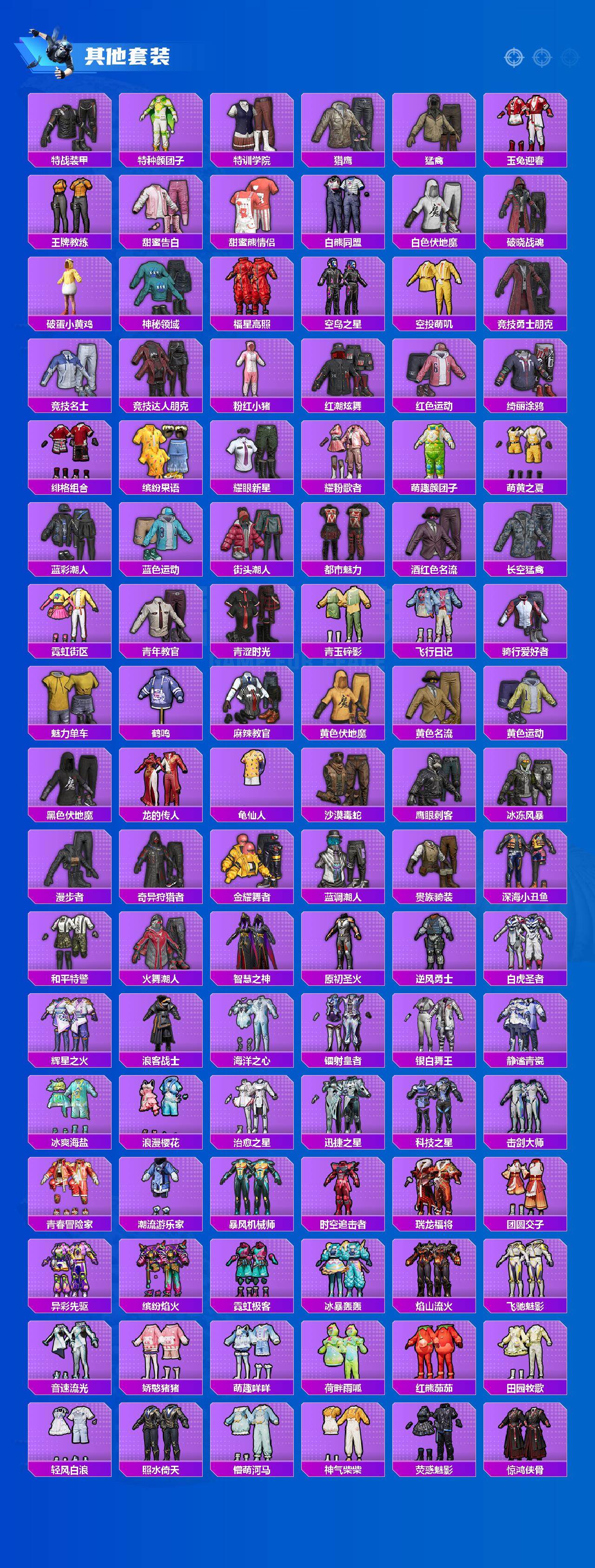 套装-深海小丑鱼,套装-奇异狩猎者,套装-浪客战士,套装-俏皮狐尾,套装-暗星紫秘,套装-炫光之旅,角色-千金淑猫,角色-萨利娅,套装-鹰眼刺客