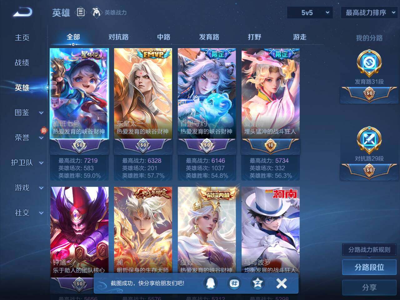 - PX_2096417-实名: 可修改 贵族等级: V6 英雄数: 113 皮肤数: 94 传说皮: 黄金狮子座,超时空战士-狄仁杰 限定皮: 李小龙,梁祝,御风骁将,至尊宝,大圣娶亲