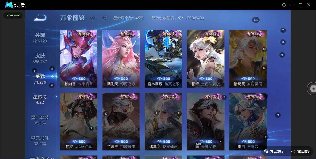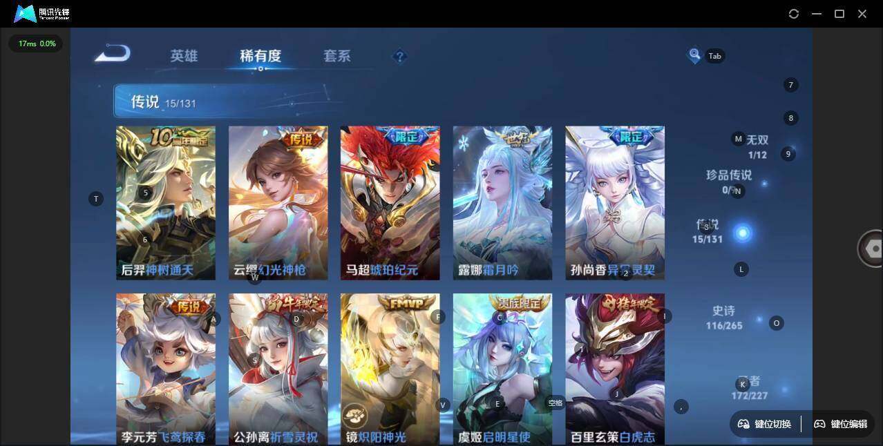 - [12091101]V8 1典藏 15传说 125英雄 319皮肤 可修改实名 优质装备:鸣剑·曳影,黄金狮子座,云鹰飞将(小将军),绛天战甲(鸡嘴战神),猫影幻舞,久胜战神,一念神魔,地狱火,零号·赤焰,地狱之眼,游龙清影(小青龙),末日机甲-孙策 传说皮:幻光神枪 珍宝阁皮:女武神,玩趣恶龙 限定皮:逐霄战戟,鸣野蒿,至尊宝,傲雪梅枪,白鹤梁神女,魔法小厨娘,时雨天司(水龙头),神威(电光马子),遇见飞天,高山流水,五谷丰年,冰锋战神,天狼运算者,游园惊梦,梁祝,御风骁将(吕布年限),天狼溯光者,李小龙,朱雀志(守约年限),圣诞老人,默契交锋-花木兰,孙行者,猪悟能,大圣娶亲 史诗皮:化蝶舞,紫霞仙子,电玩小子(小书包),白龙吟,特工魅影,千年之狐,永昼,江河有灵,魅语,百解令(蒙犽),蒙恬荣光圣徽,冰冠公主,偶像歌手,晚萤,电玩·爆裂旋风,暗夜猫娘,龙骑士(小龙虾),末日机甲-吕布,猫狗日记-孙策,乱世虎臣,节奏热浪,修罗,女仆咖啡,摇滚巨星,水果甜心,绅士熊喵,天才门将,星夜王子,心灵骇客,时之奇旅-安琪拉,功夫厨神,德古拉伯爵,暗隐猎兽者,幽灵船长,鬼剑武藏,心灵战警,天秀·启明,舞动绿茵,地狱岩魂,纤云弄巧,拒霜思,缤纷独角兽,乘风破浪,逐浪之夏,水晶猎龙者,金属风暴,原初追逐者,圣诞狂欢,圣诞恋歌,鹰眼统帅,暗夜贵公子,魅力维加斯,黎明之约,无心,未来纪元-赵云