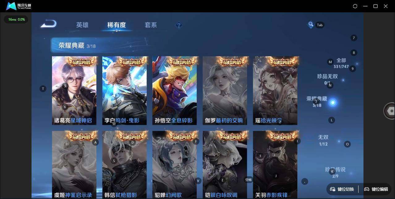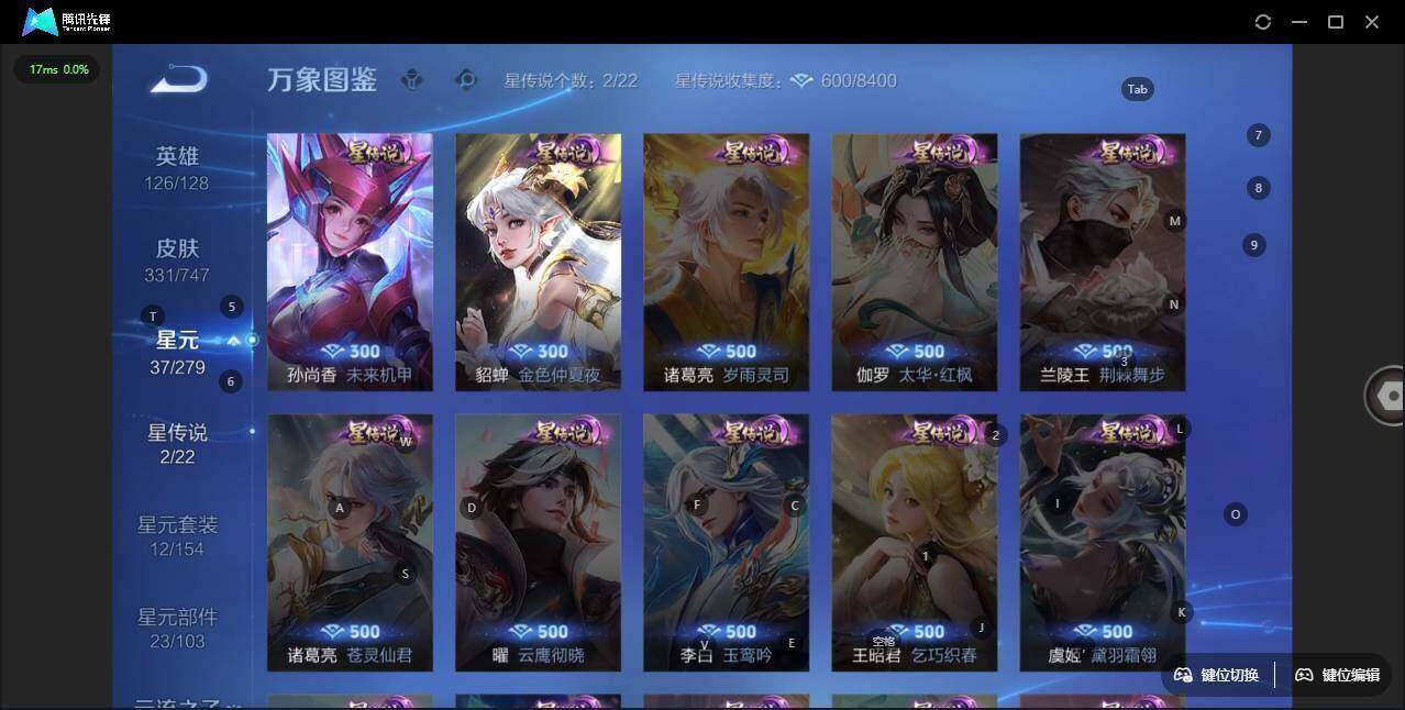 - [11276735]V6 1典藏 4传说 124英雄 141皮肤 可修改实名 荣耀水晶:弑枪猎影(韩信典藏) 传说皮:琥珀纪元铠,黄金狮子座,画中仙 珍宝阁皮:蔷薇恋人 限定皮:鸣野蒿,傲雪梅枪,五谷丰年,匿光追影者 史诗皮:茶境仙,鸭鸭历险记-刘禅,龙之律动,石田雨龙,百相守梦-百里守约,百相守梦-黄忠,蔬乡物语(鲁班七号),紫霞仙子,黄金分割率,千年之狐,偶像歌手,无限星赏官,魅语,猫狗日记-孙策,水果甜心,绅士熊喵,星夜王子,鬼剑武藏,天秀·启明,乘风破浪,逐浪之夏,水晶猎龙者,曙光守护者,金属风暴,圣诞恋歌,鹰眼统帅,魅力维加斯,赏金猎手,无心,未来纪元-赵云