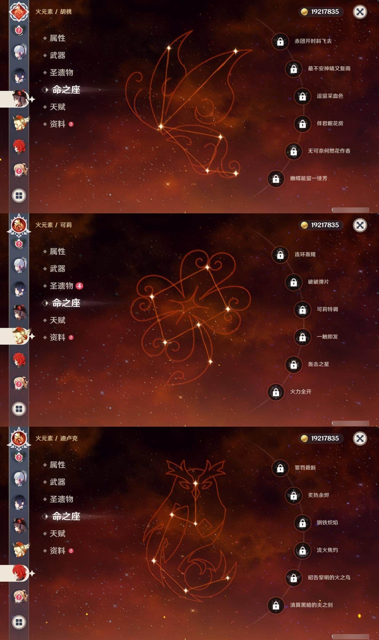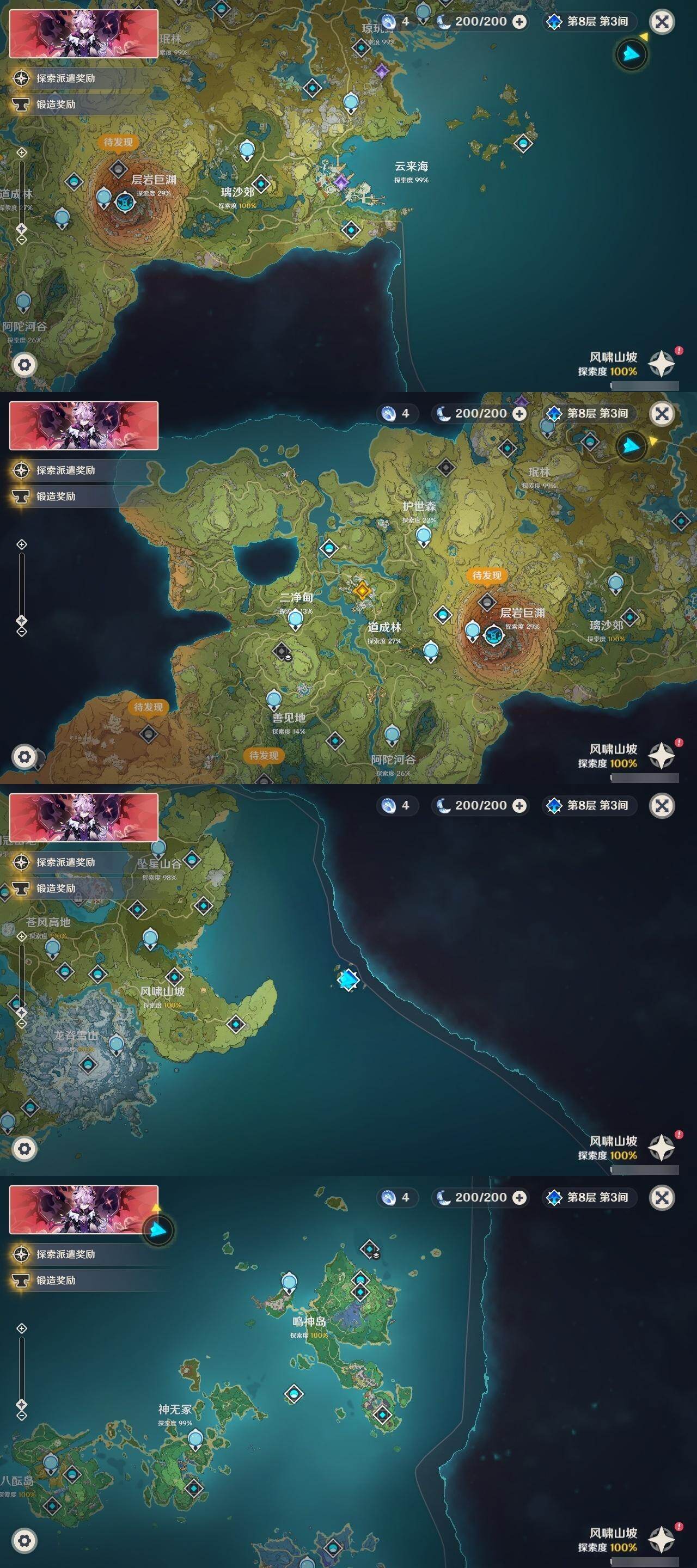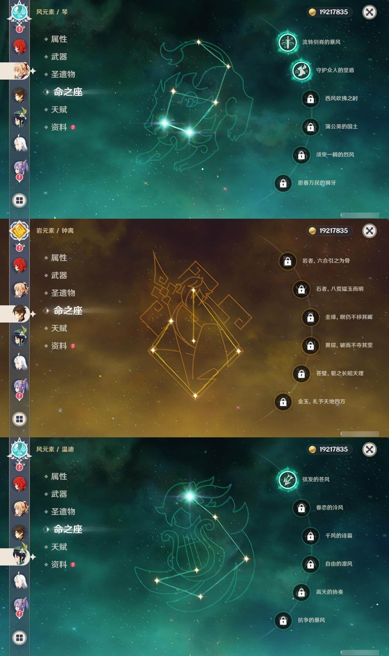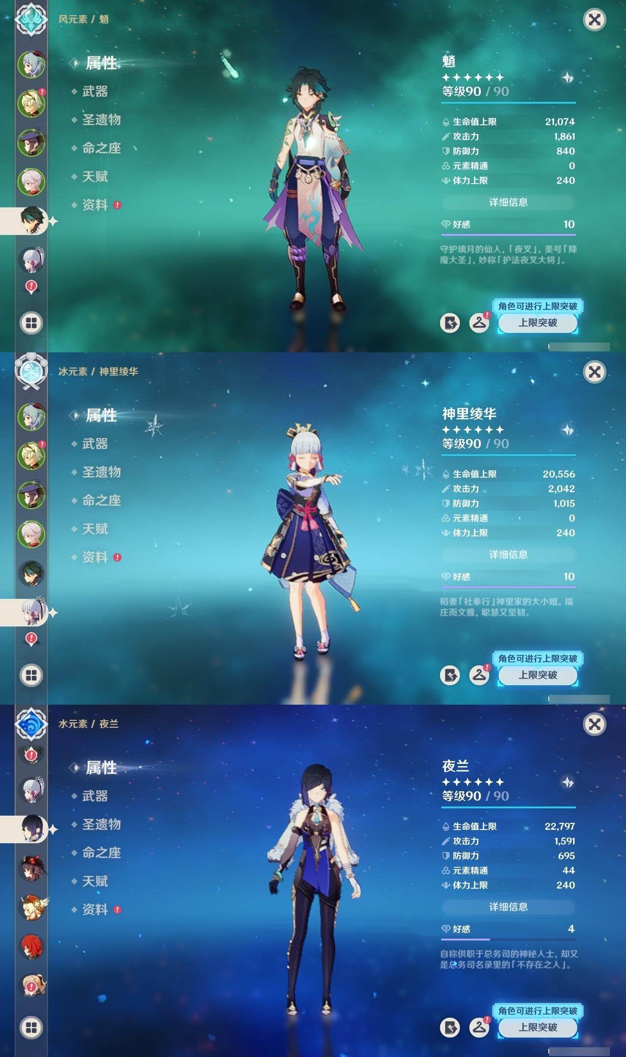 1命纳西妲,0命妮露,0命夜兰,0命申鹤,0命雷电将军,0命枫原万叶,0命神里绫华,0命钟离,0命胡桃,0命甘雨,0命魈,1命温迪,0命可莉,0命达达利亚,1命阿贝多,2命刻晴,1命七七,2命琴,0命莫娜,0命迪卢克,精1若水,精1雾切之回光,精1护摩之杖,精1磐岩结绿,精1天空之脊,精1贯虹之槊,精1天空之翼,精1阿莫斯之弓,精1风鹰剑,精1狼的末路
