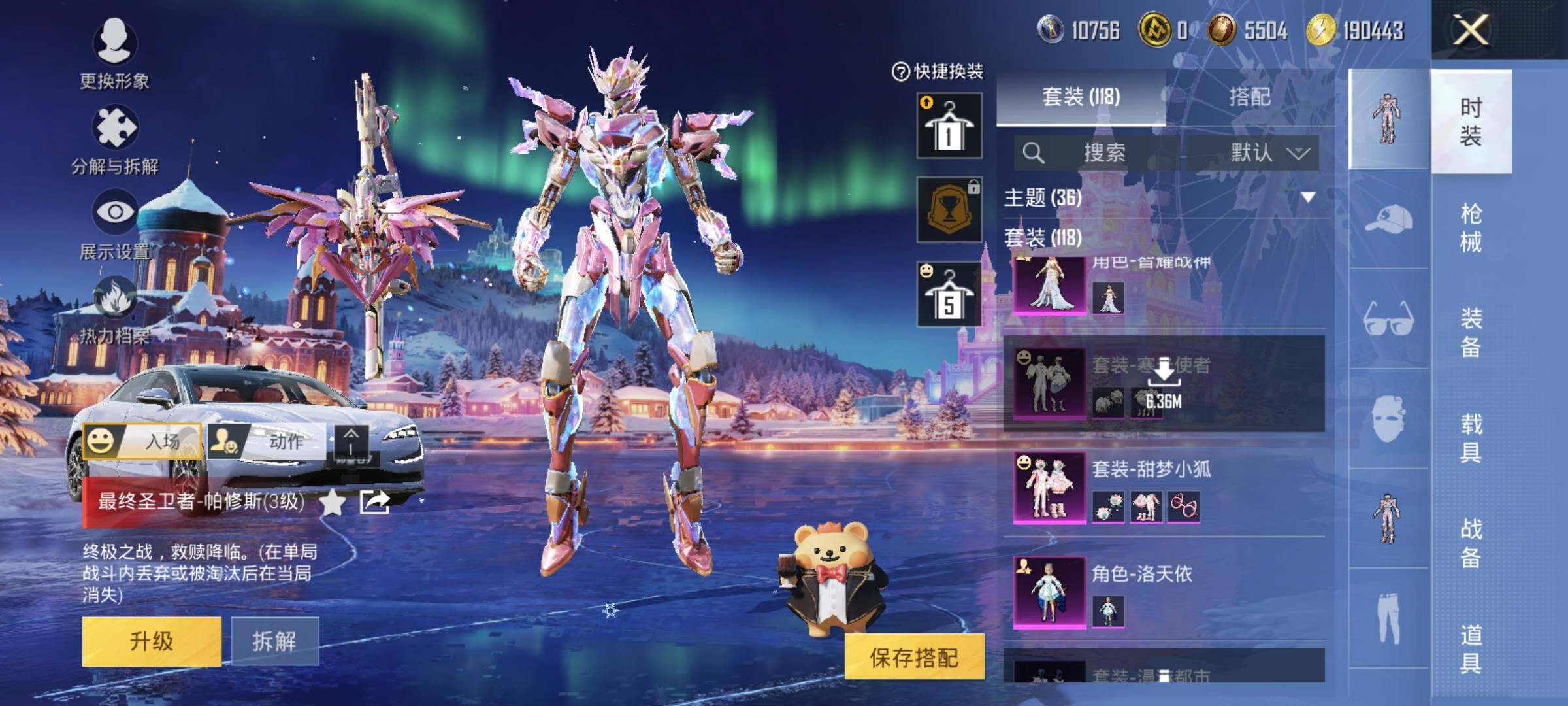 【粉色套装】:角色-洛天依,粉装-甜梦小狐,粉装-寒光使者,套装-创世·救赎,角色-千金淑猫,角色-智耀战神,粉装-幻彩电音