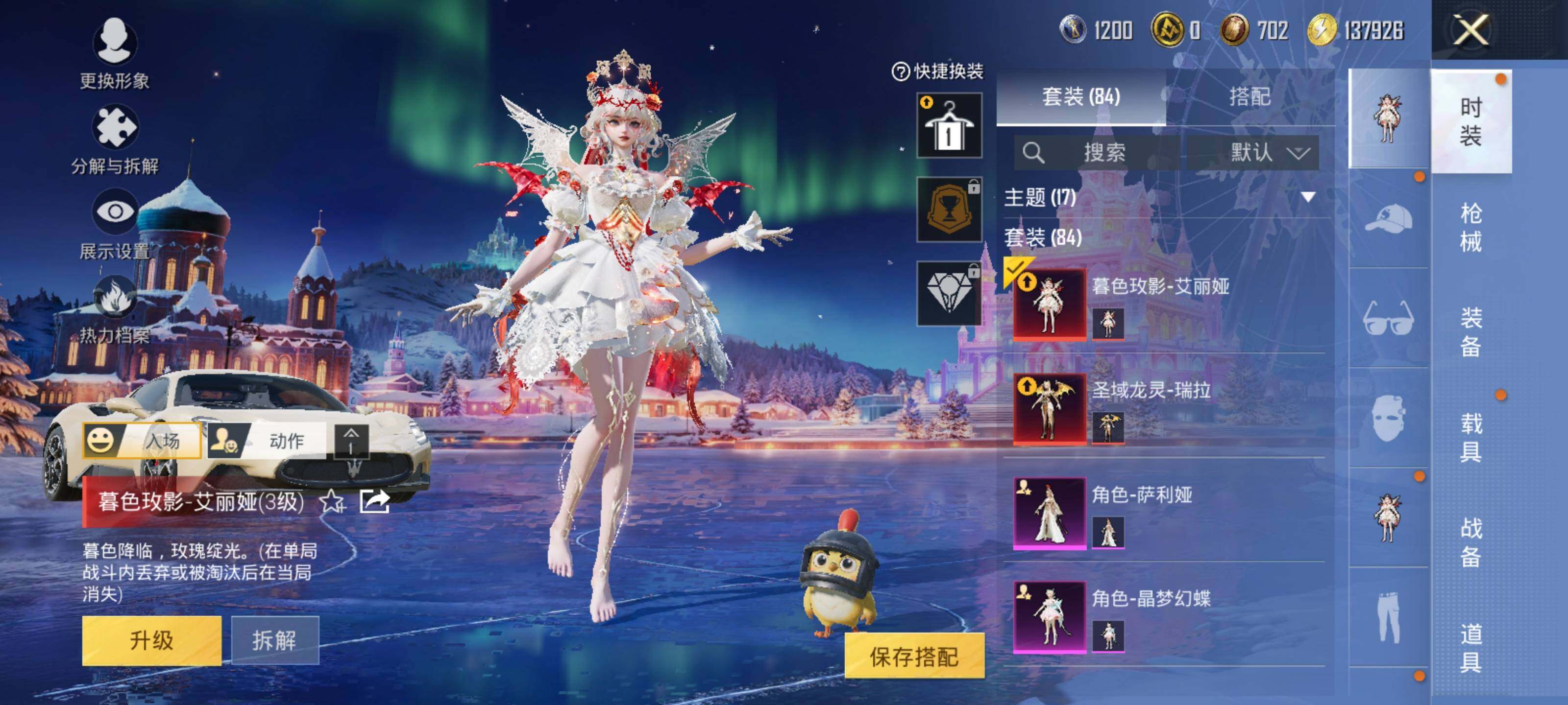 【红色神装等级】:暮色玫影-艾丽娅(三级),圣域龙灵-瑞拉(一级)