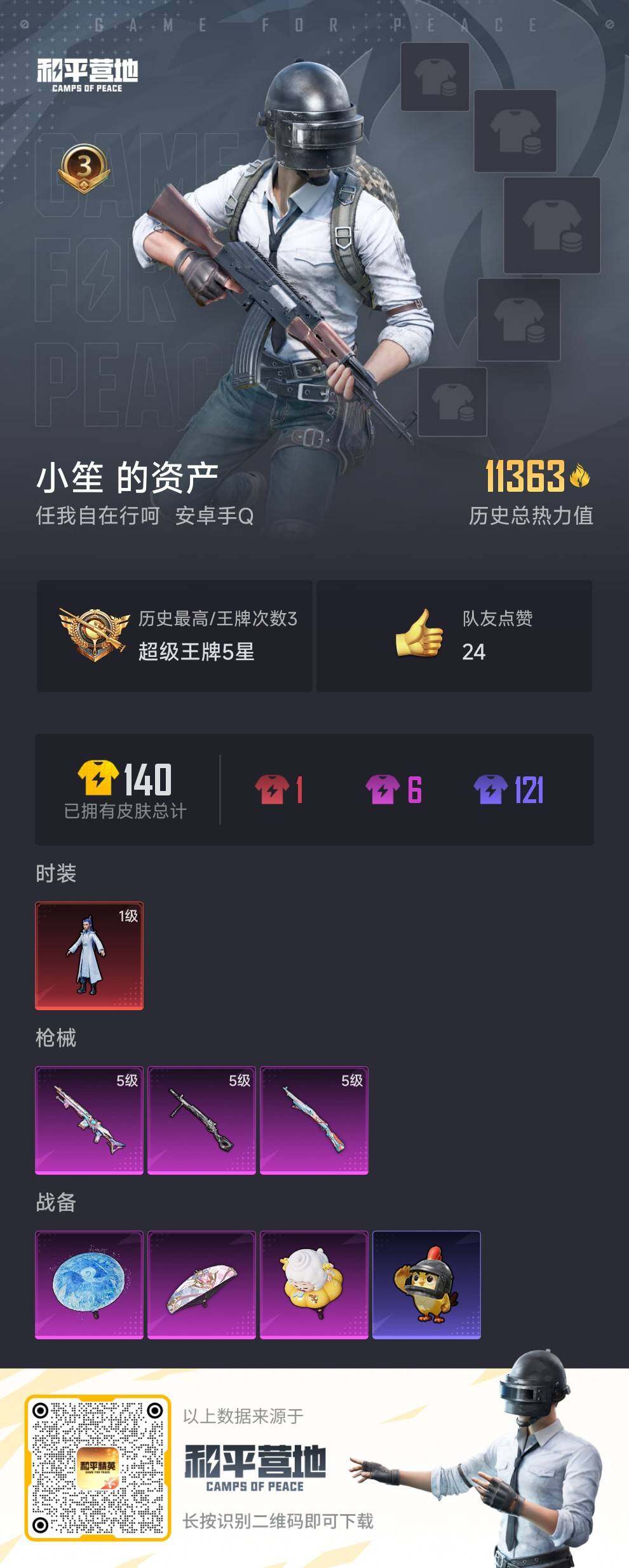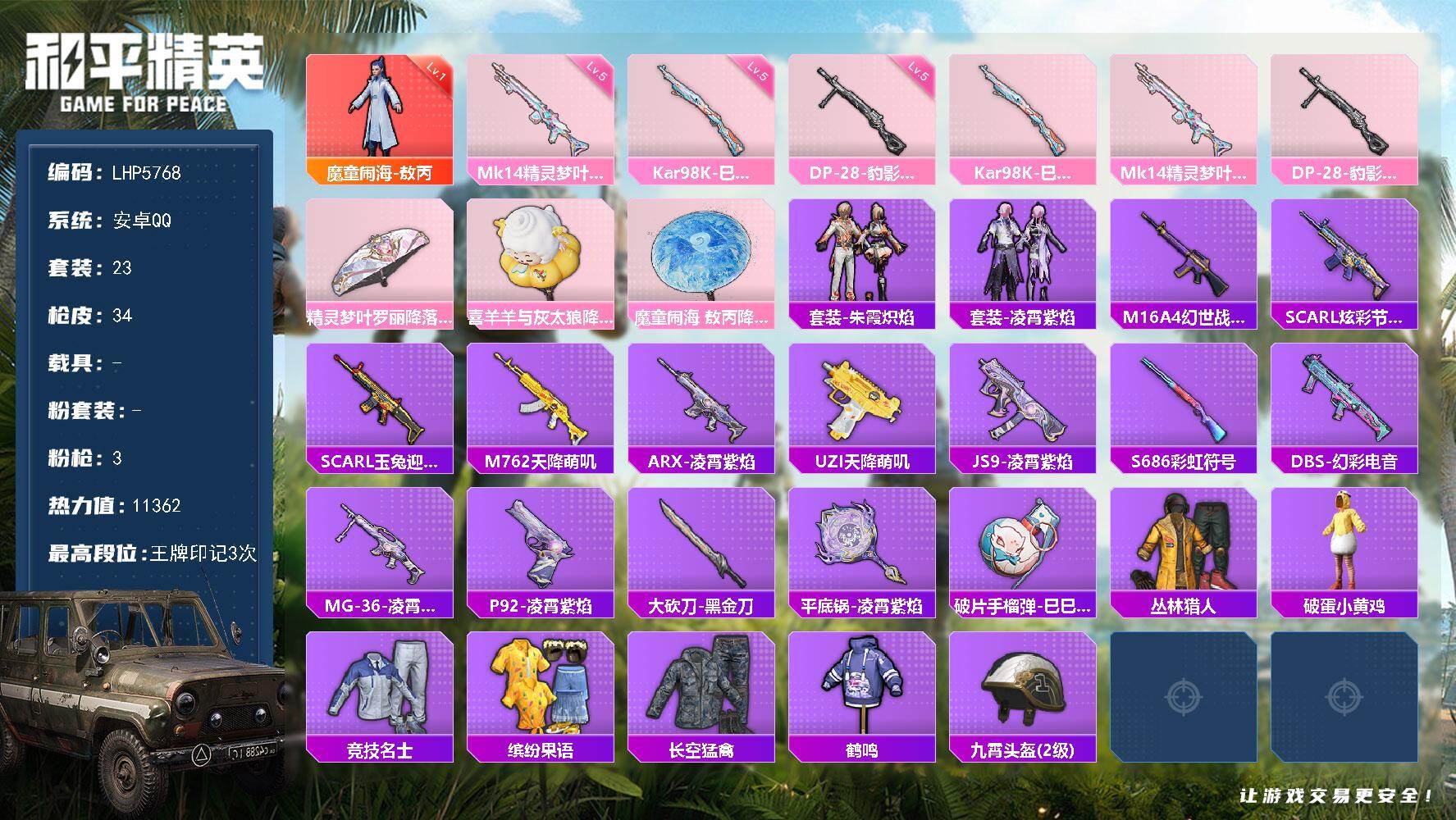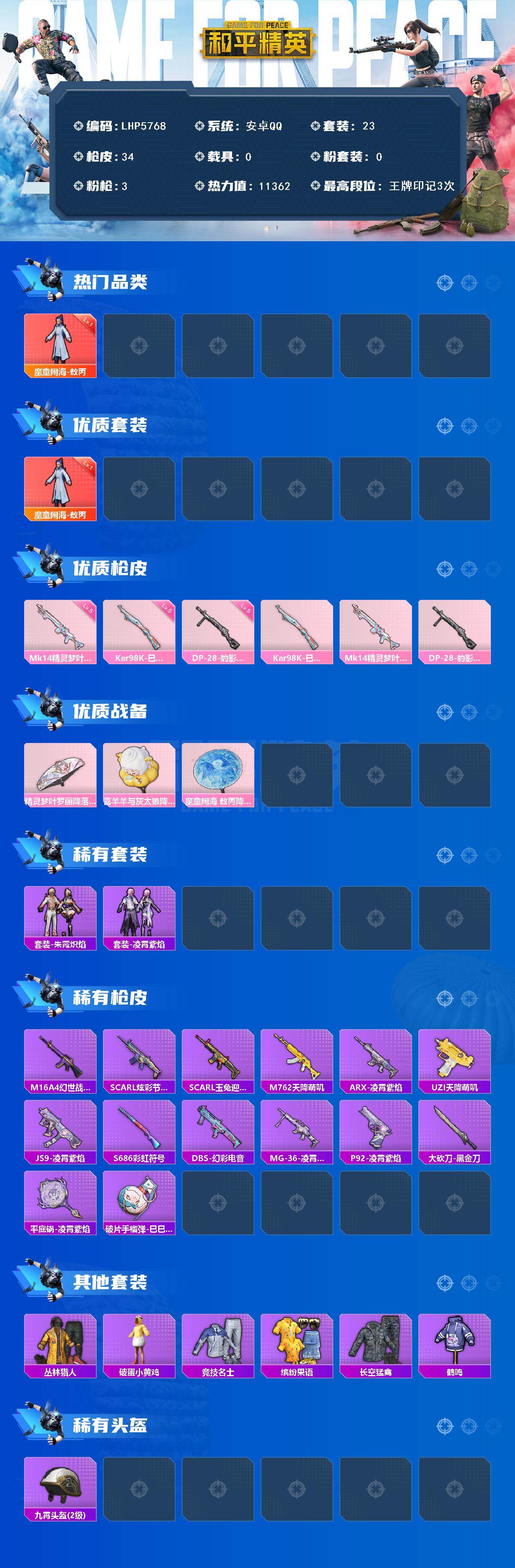 [15614593]【店主推荐捡漏号!可直接换绑】安卓 手Q-1神装-3特效枪1.1w热力值-3王牌印记-23套装-34枪皮