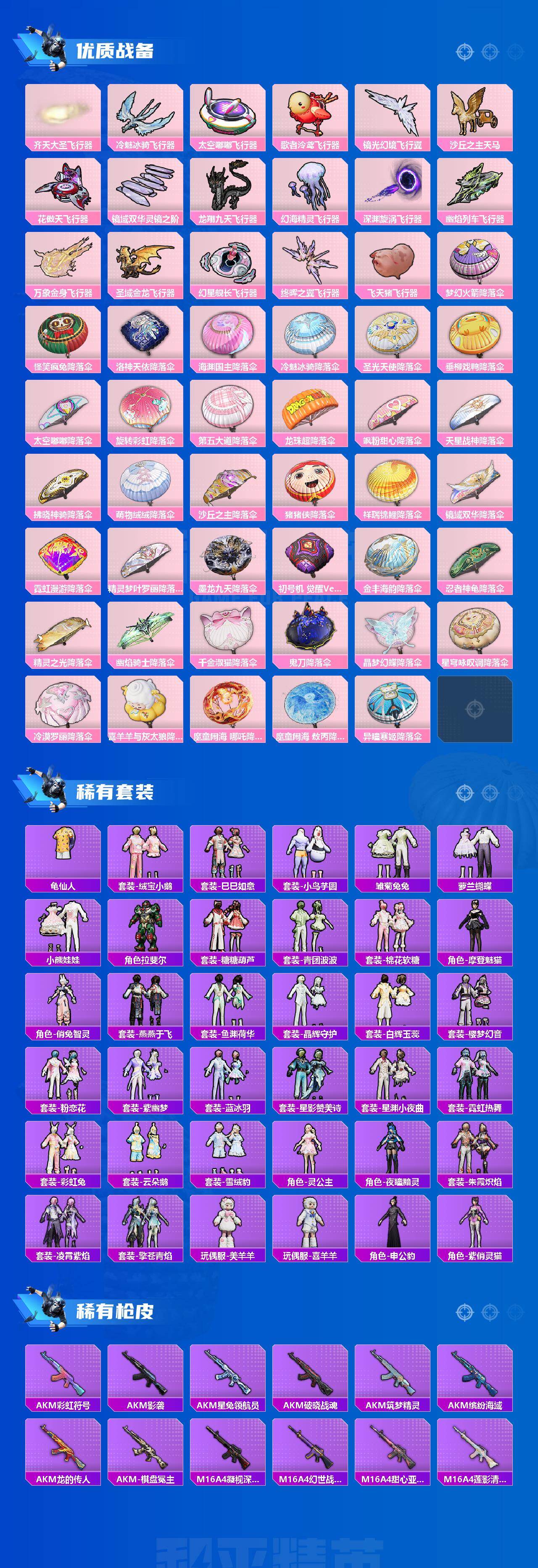[15614590]【店主推荐捡漏号!可直接换绑】安卓 手Q-1神装-32粉装-21特效枪-4载具-19粉色飞行器-12.7w热力值-10王牌印记-223套装-333枪皮 【红色神装等级】:沙丘之主-图卡盟(三级) 【红色角色神装】:沙丘之主-图卡盟 【热门品类】:粉装-梦幻火箭,粉装-音爆索尼克,粉装-缤纷油彩,套装-浪漫天命,套装-都市猎人,套装-派对舞王,套装-深海小丑鱼,套装-龟仙人,角色-8号机,角色-Mark.06 【粉色套装】:粉装-梦幻火箭,粉装-星之信仰,粉装-缤纷油彩,粉装-花间之火,粉装-冰霜白皇,粉装-虎啸骄阳,粉装-炙焰赤龙,角色-洛天依,粉装-酣梦娃娃,粉装-冷魅冰骑,粉装-赤焰黑爵,粉装-紫电风暴,粉装-暖熊萌萌,粉装-旋转彩虹,粉装-冰川粉黛,粉装-霞光圣骑,粉装-寒光使者,粉装-音爆索尼克,粉装-第五大道,超级赛亚人-孙悟空,角色-呆萌星弥,角色-猩猩队长,粉装-闲梦青缨,角色-宙之时溯,粉装-蜜语绒猫,角色-严莉莉,角色-小蓝,角色-初号机 觉醒Ver.,角色-千金淑猫,角色-智耀战神,角色-凤凰座 一辉,角色-冷漠罗丽 【粉色枪皮等级】:AKM-魔法神域(三级),AKM-幽焰骑士(三级),SCAR-L-锦绣绵绵(五级),SCAR-L-魔童闹海 哪吒(三级),M416-全功率超战(五级),M416-墨龙九天(六级),GROZA-精灵之光(三级),AUG-暖羊咩咩(五级),Famas-初号机 觉醒Ver.(五级),AKS-74U-星穹咏叹调(二级),Kar98K-创世·救赎(四级),Kar98K-巳巳如意(五级),M24-莲影清波(四级),M24-镜域双华(三级),Mk14-精灵梦叶罗丽(三级),AMR-智耀战神(五级),M417-第五大道(五级),MK12-雪月幻音(一级),DP-28-豹影疾电(五级),MG3-洛神天依(二级),MG-36-沧焰双生(五级) 【粉色载具】:仰望U7(阿盖尔紫),保时捷918 Spyder(沉静蓝),幽焰风驰摩托车,僚机-冰龙团团,护世瑞兽 【粉色枪皮】:AKM-魔法神域,AKM-幽焰骑士,SCAR-L-锦绣绵绵,SCAR-L-魔童闹海 哪吒,M416-全功率超战,M416-墨龙九天,GROZA-精灵之光,AUG-暖羊咩咩,Famas-初号机 觉醒Ver.,AKS-74U-星穹咏叹调,Kar98K-创世·救赎,Kar