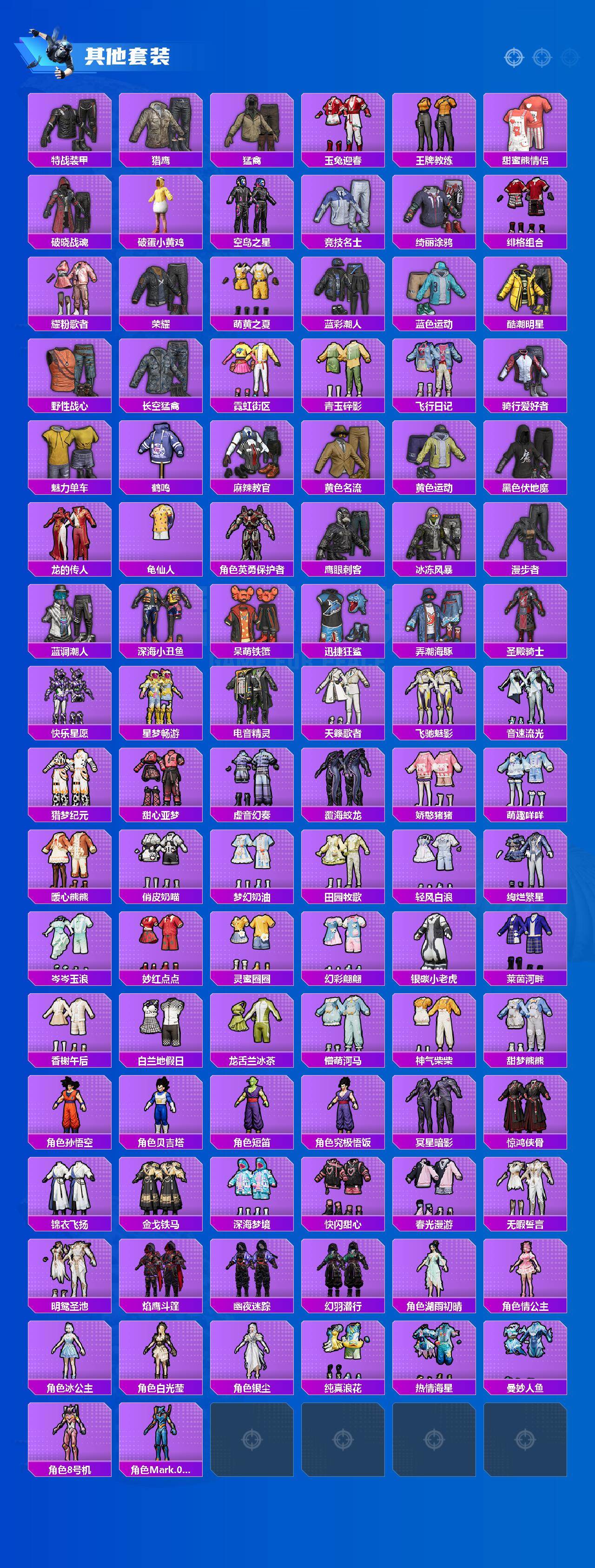 【粉色套装】:粉装-梦幻火箭,粉装-星之信仰,粉装-缤纷油彩,粉装-花间之火,粉装-冰霜白皇,粉装-虎啸骄阳,粉装-炙焰赤龙,角色-洛天依,粉装-酣梦娃娃,粉装-冷魅冰骑,粉装-赤焰黑爵,粉装-紫电风暴,粉装-暖熊萌萌,粉装-旋转彩虹,粉装-冰川粉黛,粉装-霞光圣骑,粉装-寒光使者,粉装-音爆索尼克,粉装-第五大道,超级赛亚人-孙悟空,角色-呆萌星弥,角色-猩猩队长,粉装-闲梦青缨,角色-宙之时溯,粉装-蜜语绒猫,角色-严莉莉,角色-小蓝,角色-初号机 觉醒Ver.,角色-千金淑猫,角色-智耀战神,角色-凤凰座 一辉,角色-冷漠罗丽