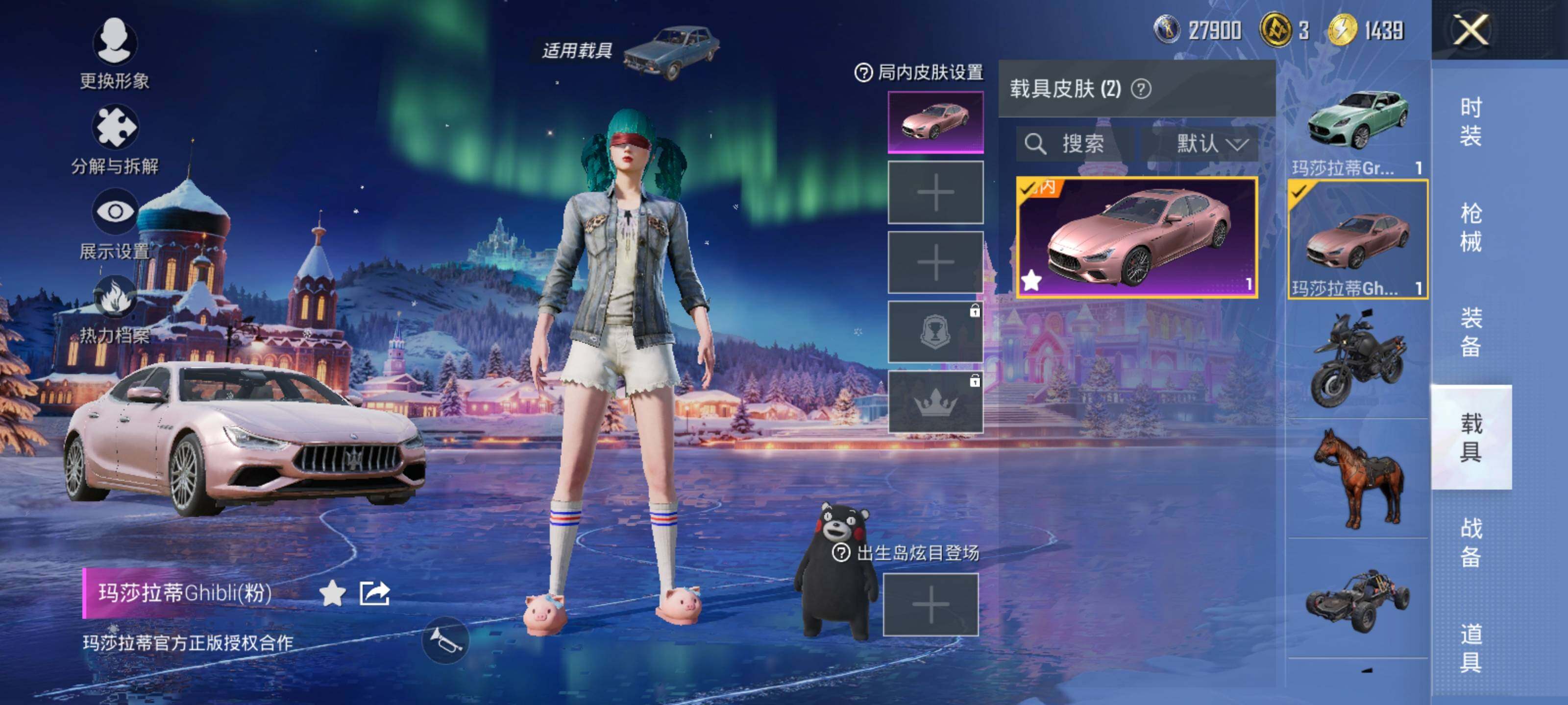 【粉色载具】:玛莎拉蒂Ghibli(粉),玛莎拉蒂Grecale(薄荷绿)