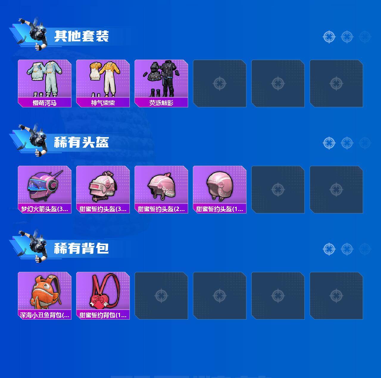 套装-缤纷油彩,套装-深海小丑鱼,套装-未来战士,套装-星之彼岸,套装-山涧鹿灵,套装-未来歌姬,套装-鹰眼刺客,套装-呆萌铁蟹
