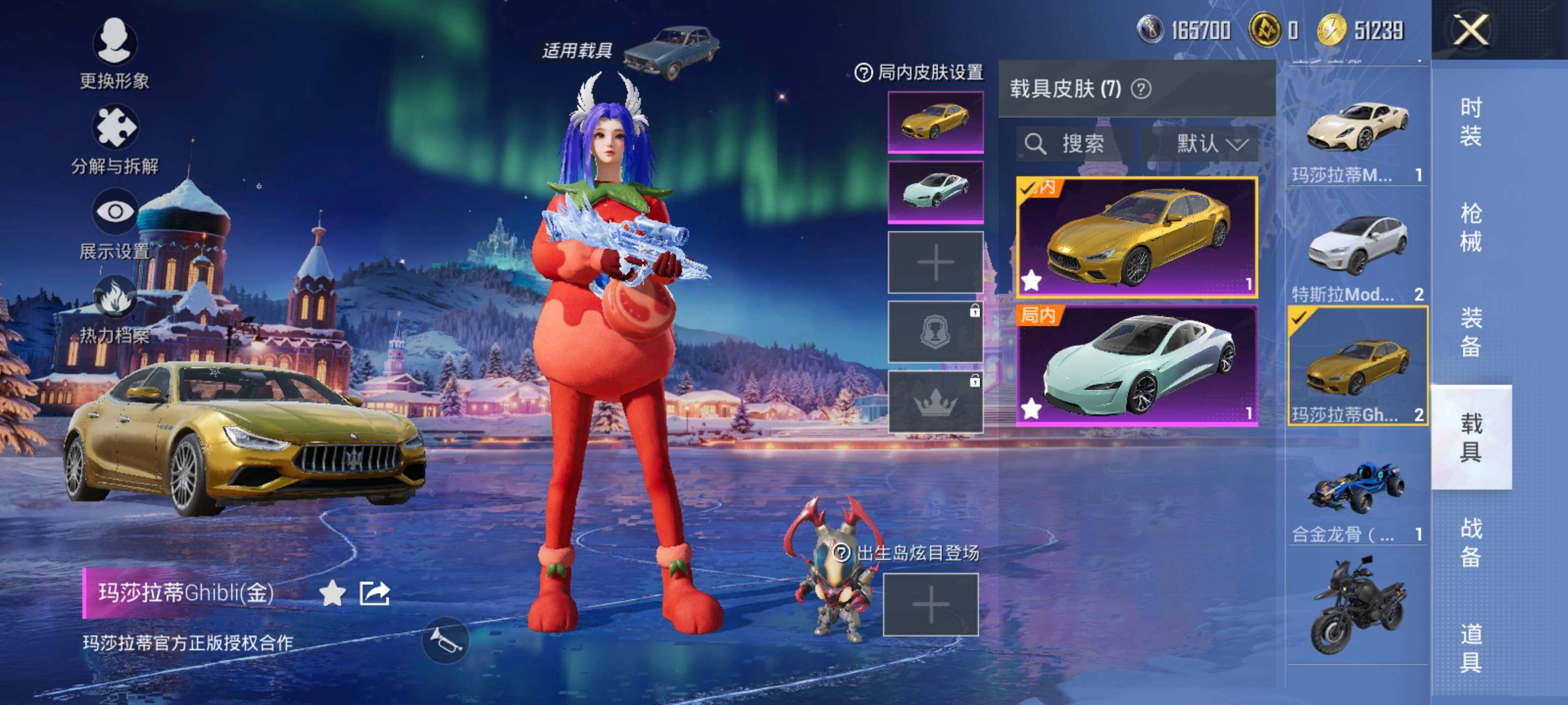 【粉色载具】:特斯拉Model X(珍珠白),特斯拉Roadster(水滴蓝),兰博基尼URUS(明艳黄),玛莎拉蒂MC20(星石白),玛莎拉蒂Ghibli(金),合金龙骨(蓝),星梦玉骢