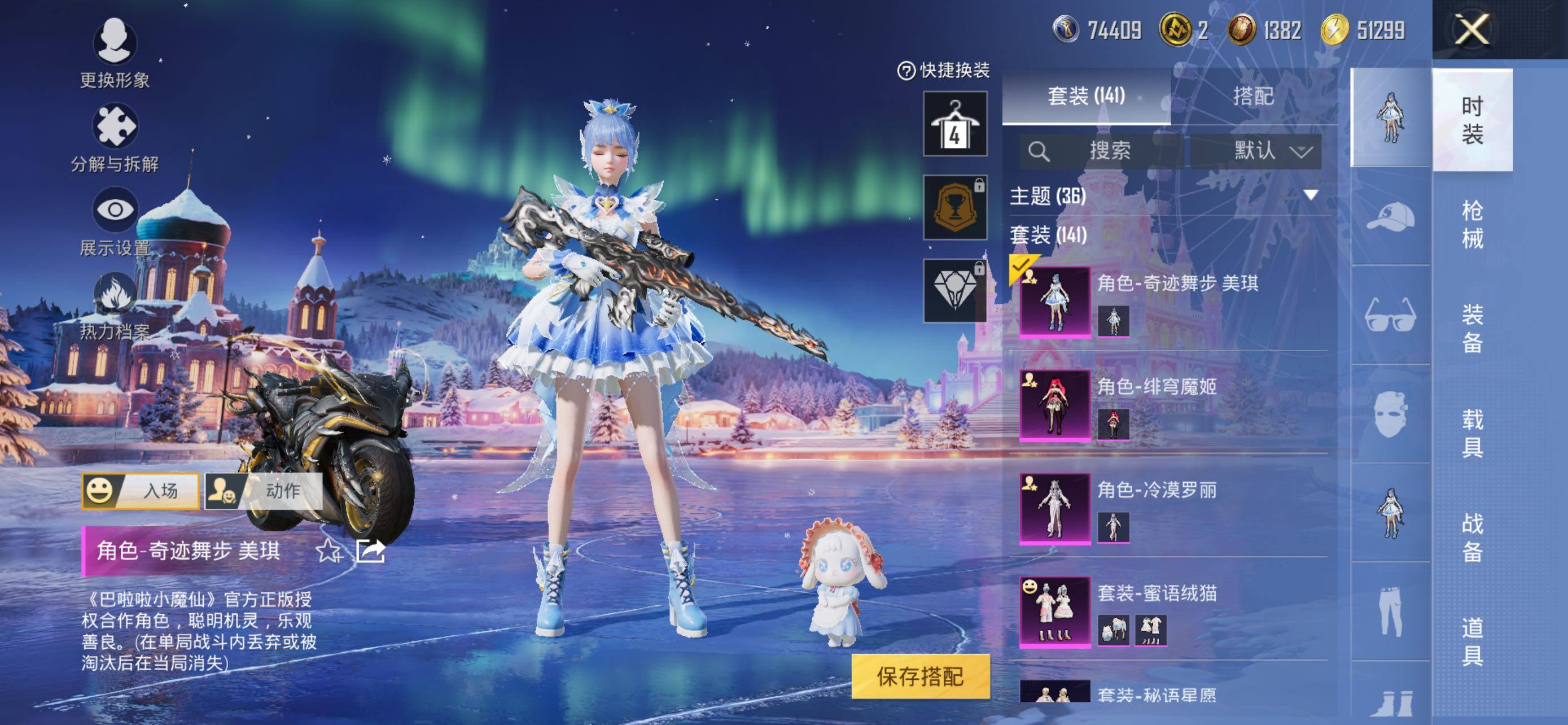 【粉色套装】:粉装-蜜语绒猫,角色-冷漠罗丽,角色-绯穹魔姬,角色-奇迹舞步 美琪
