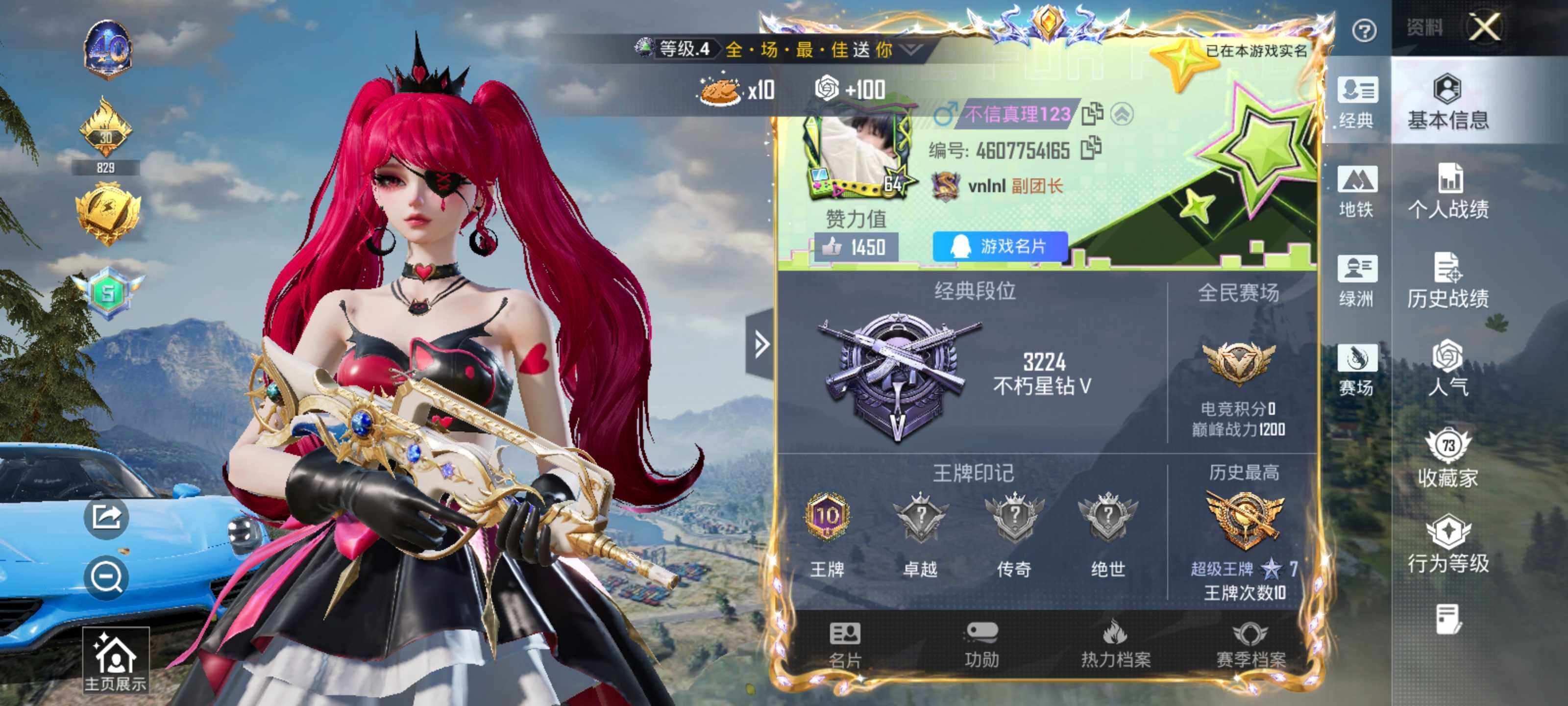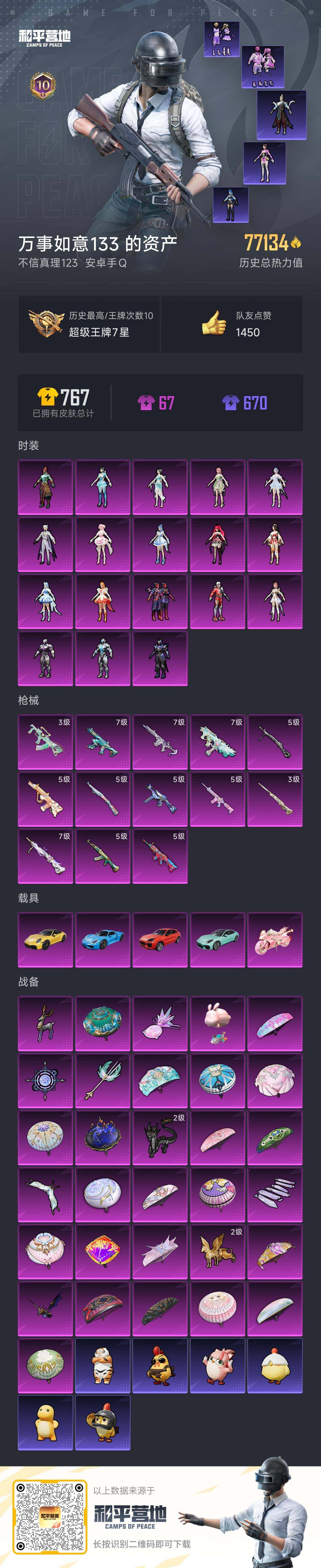 - 安卓QQ 可二次 当前段位不朽星钻Ⅳ 历史最高段位传奇王牌19星 热力值95401 等级68 套装194 王牌次数13 点券0 外观套装15 枪械皮肤17 热门紫装16 载具2 飞行器3 稀有0 头盔4 背包3