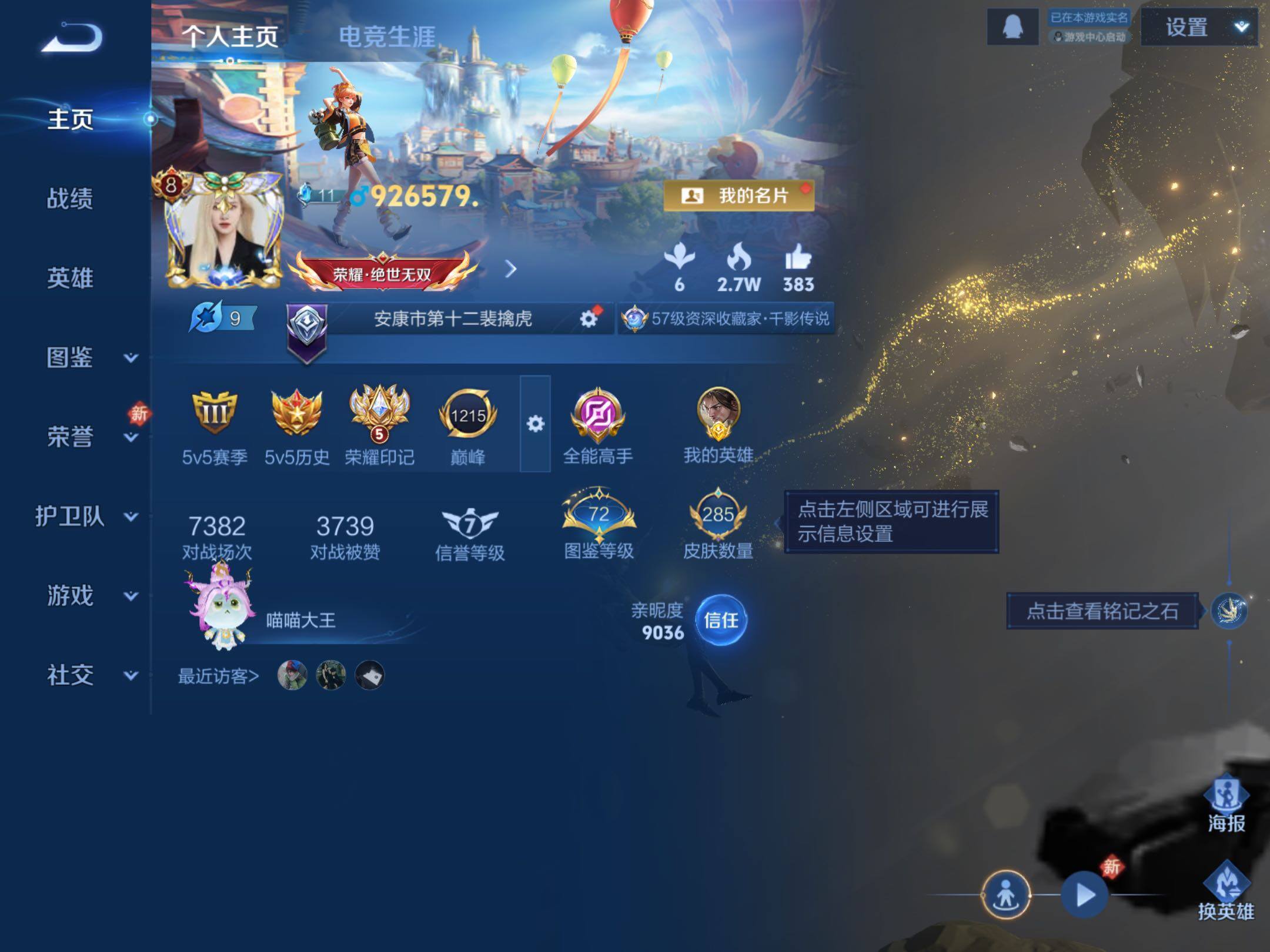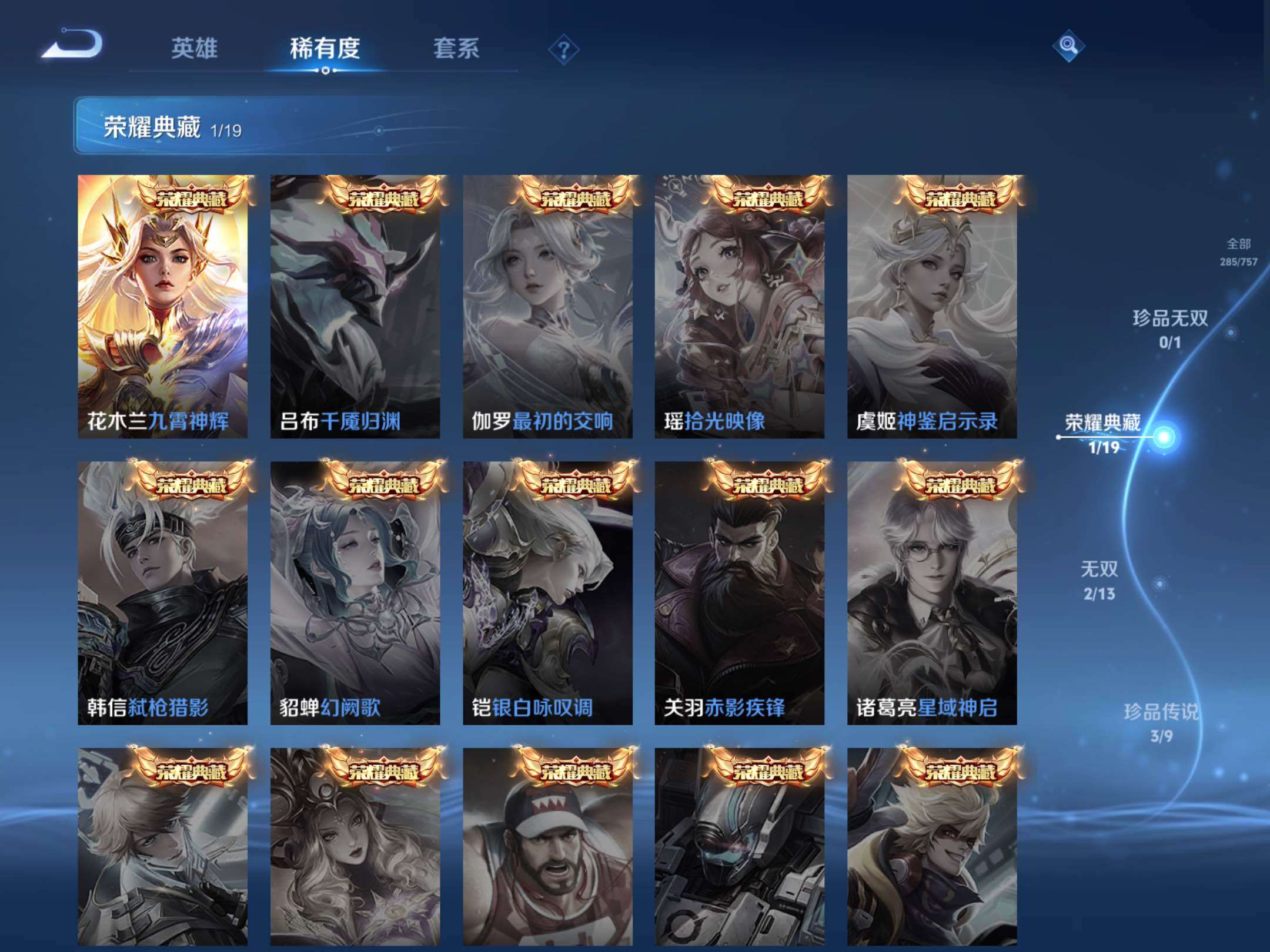 - [11471700]V7 1典藏 15传说 123英雄 169皮肤 可修改实名 优质装备:鸣剑·曳影,云鹰飞将(小将军),炽阳神光,超时空战士-狄仁杰,无双飞将,浮生妄,妄想实况,霜月吟,澜逐花归海 传说皮:乘龙·铭钟鼎(赵云年限),祥瑞亨通,幻光神枪 珍宝阁皮:优雅恋人 限定皮:愿照·九州拓(澜年限),逐霄战戟,鸣野蒿,武陵仙君(小桃花),诗剑行,游园惊梦,匿光追影者 史诗皮:器灵·浮梦炉,绮世丹青,化蝶舞,星界特工,星界战将,龙之律动,茶境仙,破空之剑,东方月初,谪仙醉月,百相守梦-百里守约,紫霞仙子,电玩小子(小书包),特工魅影,千年之狐,百相守梦(刘备),江河有灵,高渐离燃音魔法,蒙恬荣光圣徽,偶像歌手,暗夜猫娘,冰冠公主,末日机甲-吕布,猫狗日记-孙策,猫狗日记-大乔,乱世虎臣,女仆咖啡,水果甜心,星夜王子,心灵骇客,暗隐猎兽者,幽灵船长,鬼剑武藏,心灵战警,天秀·启明,地狱岩魂,乘风破浪,逐浪之夏,水晶猎龙者,曙光守护者,箭羽风息,金属风暴,原初追逐者,鹰眼统帅,魅力维加斯,无心