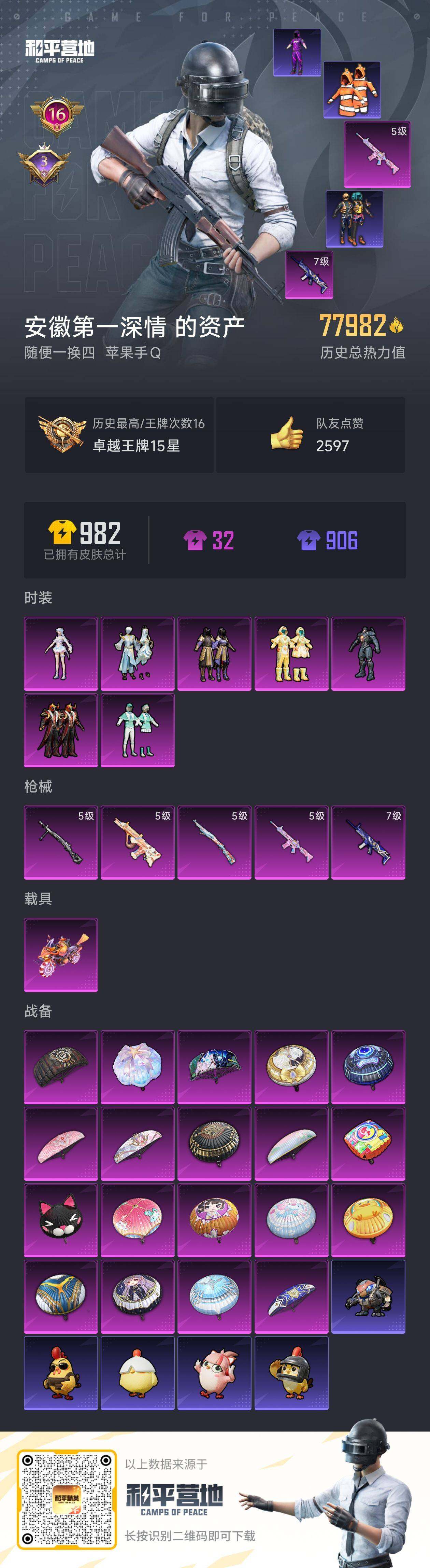 [15614773]【特价出售/店主推荐】苹果 手Q-7粉装-5特效枪-1载具-7.7w热力值-16王牌印记-209套装-246枪皮