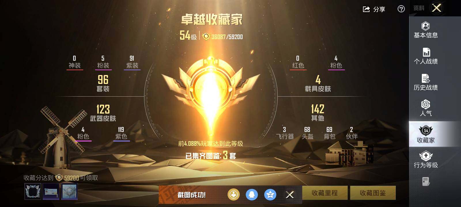 [15615583]安卓 手Q-5粉装-4特效枪-4载具-1粉色飞行器-45510热力值-3王牌印记-96套装-140枪皮