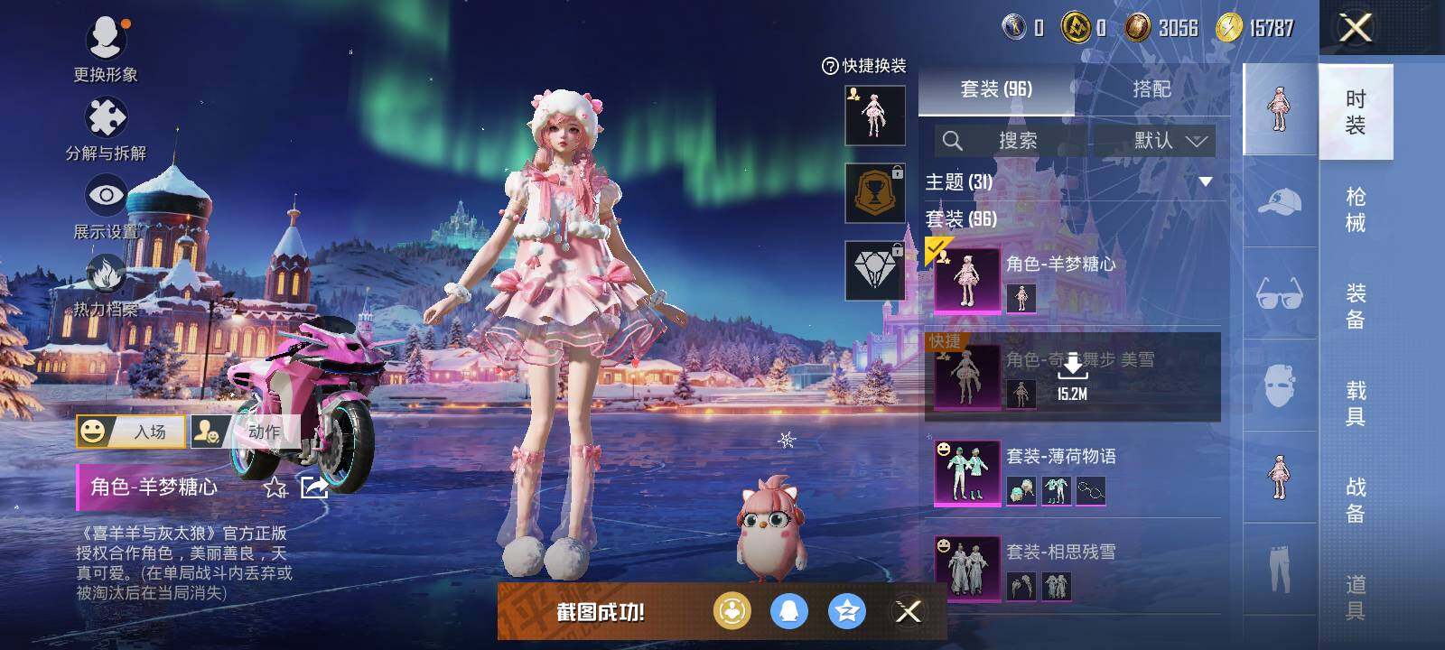 【粉色套装】:粉装-梦幻火箭,粉装-相思残雪,粉装-薄荷物语,角色-奇迹舞步 美雪,角色-羊梦糖心