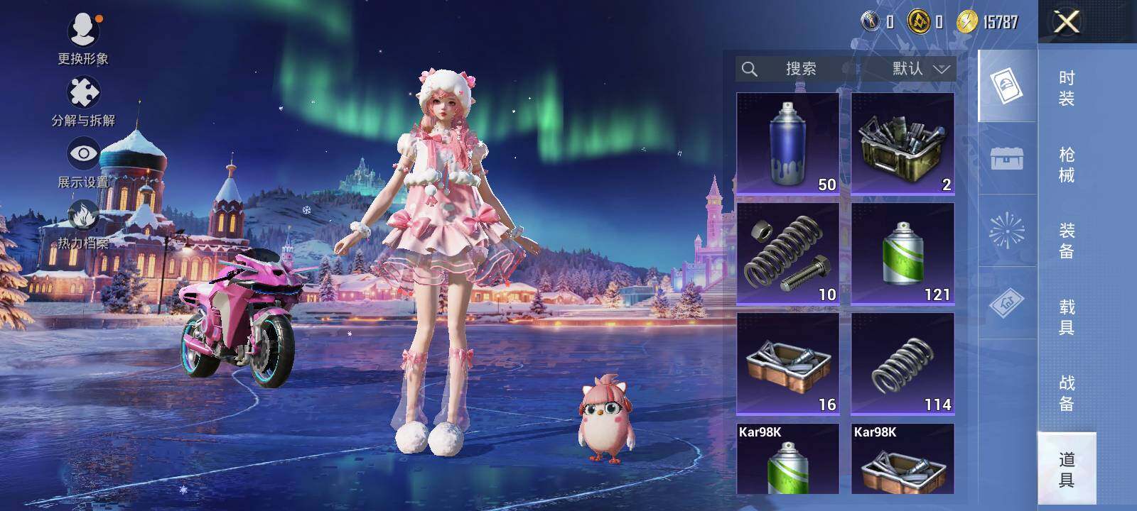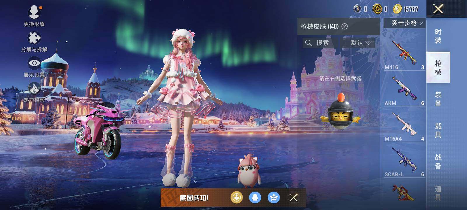【粉色枪皮等级】:SCAR-L-青春物语(七级),M762-甜蜜誓约(七级),M762-激战未来(一级),Kar98K-巳巳如意(四级)