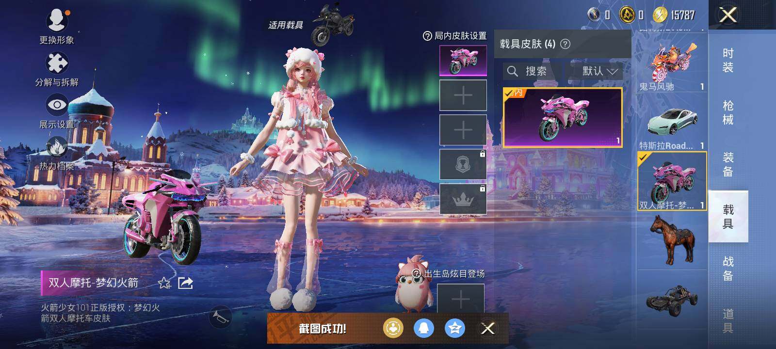 【粉色载具】:特斯拉Roadster(水滴蓝),路特斯EVIJA(星际黄),双人摩托-梦幻火箭,鬼马风驰