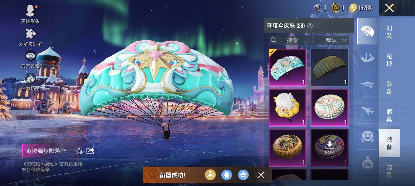 【粉色降落伞】:至尊龙雀降落伞,梦幻火箭降落伞,甜蜜誓约降落伞,激战未来降落伞,星之彼岸降落伞,相思残雪降落伞,怪笑疯兔降落伞,筑梦精灵降落伞,奇迹舞步降落伞,喜羊羊与灰太狼降落伞