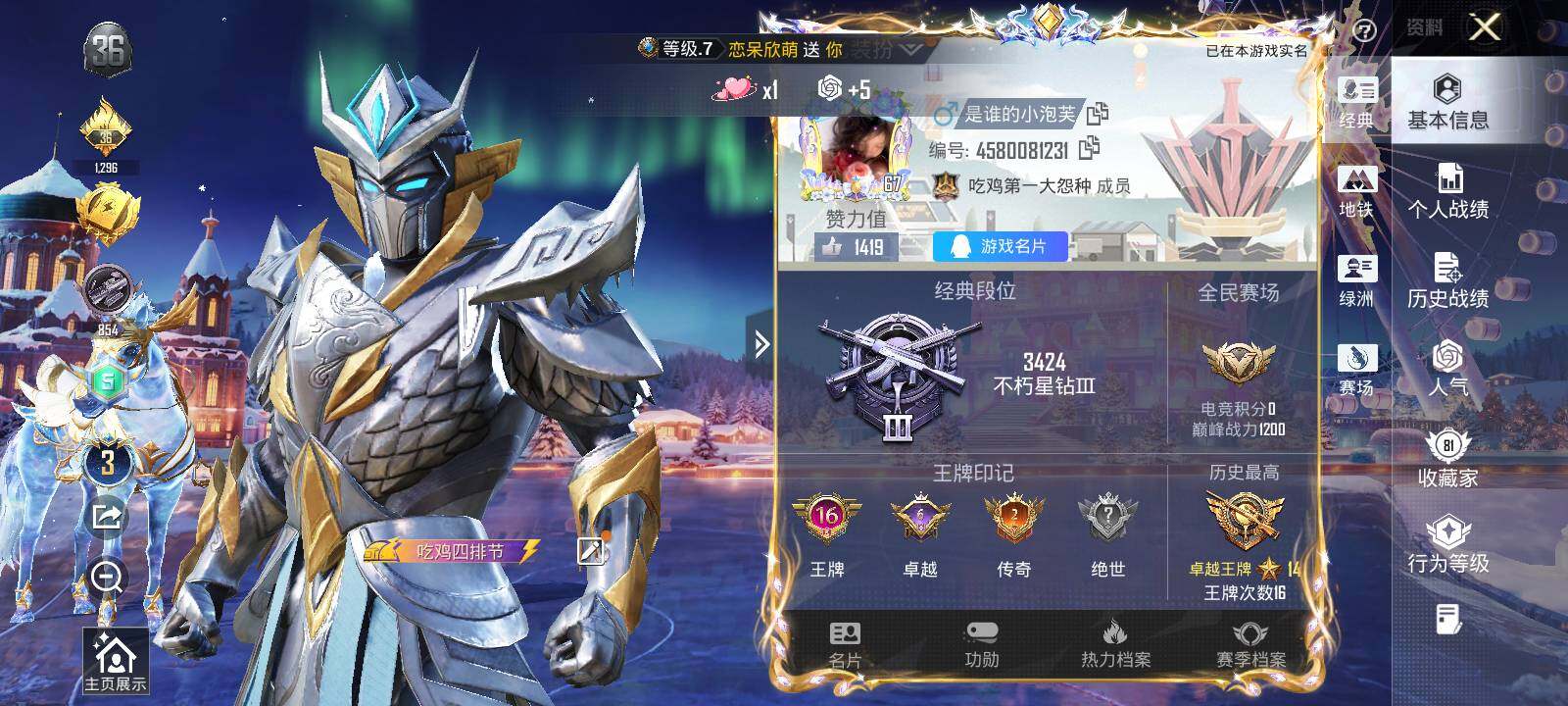 - [15103080]【店主推荐捡漏号!可直接换绑】/素材身法号/绝世印记2/地铁满天赋 苹果 手Q-13粉装-7特效枪-2载具-1粉色飞行器-7w热力值-16王牌印记-180套装-214枪皮【热门品类】:套装-浪漫天命,套装-都市猎人,套装-深海小丑鱼,套装-奇异狩猎者,角色-军刀雅典娜,套装-胖达圆圆,套装-忍者信条,套装-龟仙人【粉色载具】:宾利飞驰(布罗德盖棕双色),Formula E Gen2(巅峰兰)【粉色套装】:粉装-快乐主宰,粉装-幻影战神,粉装-数码大师,粉装-智能音符,粉装-放客神游,粉装-绿野邂逅,角色-猩猩队长,粉装-闲梦青缨,角色-白兰星,粉装-勇猛狮王,粉装-星穹咏叹调,角色-奇迹舞步 美雪,角色-异瞳寒姬【粉色枪皮等级】:AKM-梦之光华(五级),M416-五爪金龙(七级),AUG-超新星(六级),Kar98K-巳巳如意(五级),DP-28-豹影疾电(五级),MG-36-沧焰双生(五级)【粉色飞行器】:梦幻火箭飞行器