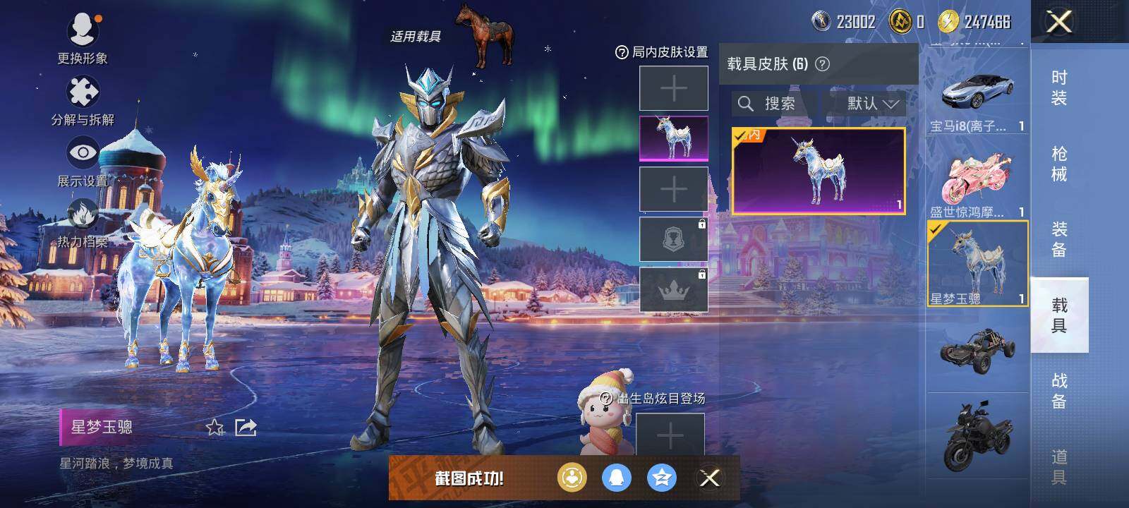 【粉色载具】:宝马i8(离子银),宝马M4(圣保罗黄),宝马X6 M(曼岛绿),保时捷911 敞篷版(星珀红),盛世惊鸿摩托车,星梦玉骢