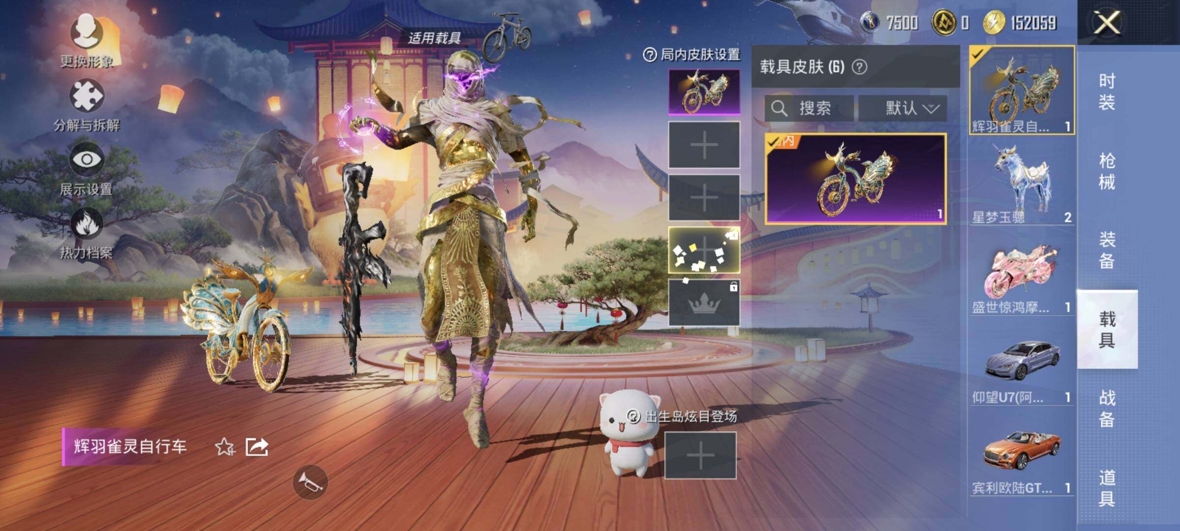 【粉色载具】:宾利欧陆GT敞篷(火焰橘),仰望U7(阿盖尔紫),盛世惊鸿摩托车,空客H135-蔚蓝之翼,星梦玉骢,护世瑞兽,辉羽雀灵自行车