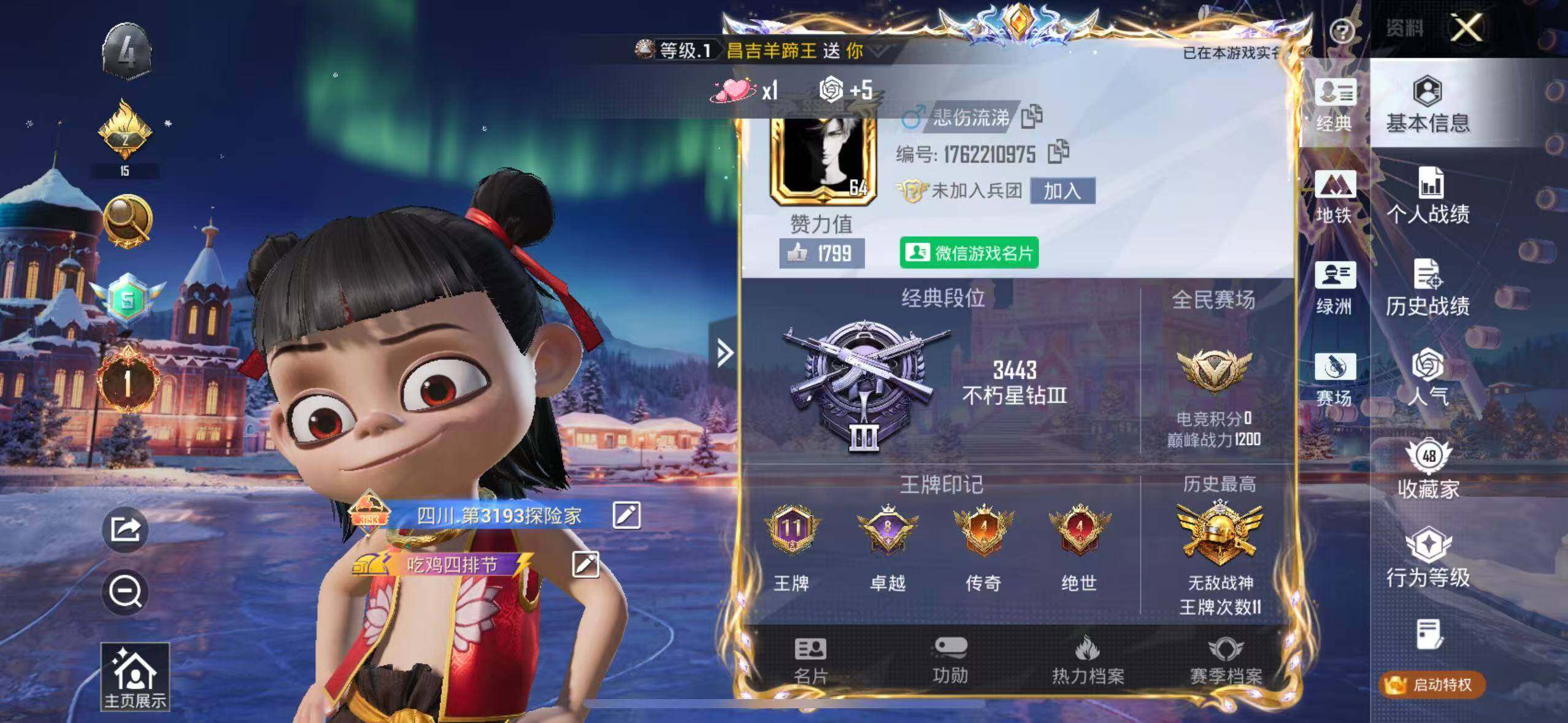 - PX_2095932-实名: 可修改 贵族等级: V4 英雄数: 45 皮肤数: 23 传说皮: 幻光神枪,续相思 限定皮: 愿照·福禄聚