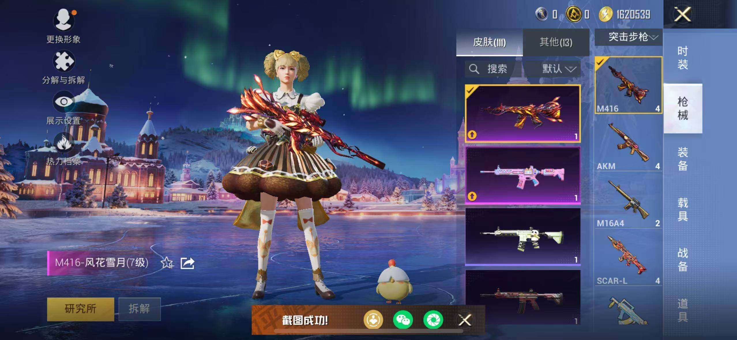 【粉色枪皮等级】:AKM-甜心宝贝(四级),SCAR-L-魔童闹海 哪吒(三级),M416-风花雪月(七级),M416-电玩时刻(五级),Kar98K-巳巳如意(五级),DP-28-豹影疾电(五级)