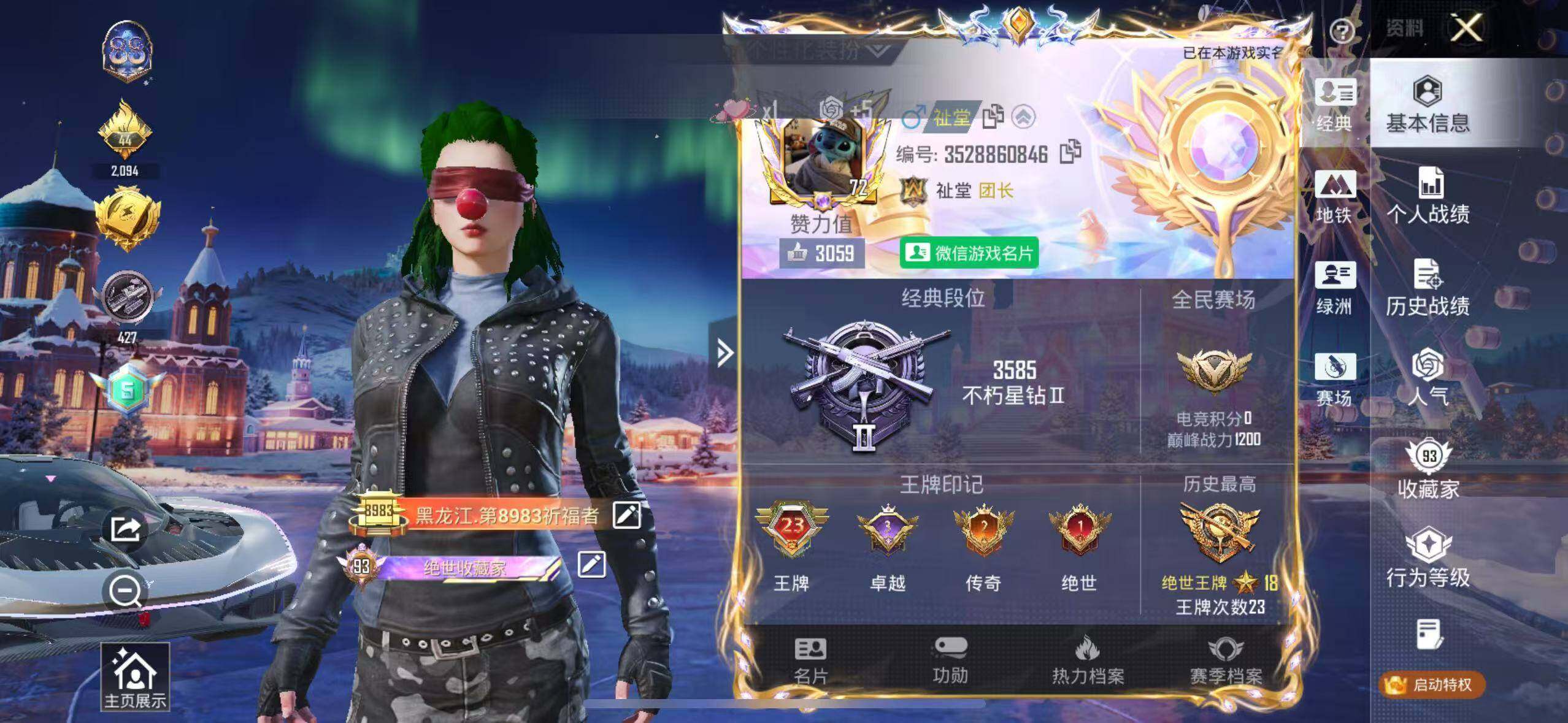 - PX_1981175-实名: 可修改 时装数: 618 载具数: 8 枪械数: 225 战备数: 140 热门装扮: 爱崽白熊,草莓生巧,王牌四分卫,山涧鹿灵,显圣真君,暗夜玫瑰,沙场疾风,吟月归客,百合蜜语,紫电风暴,赤焰黑爵,冷魅冰骑,歌者泠鸢,暗夜魅影,蜜语绒猫 载具: 玛莎拉蒂Ghibli(蓝),阿斯顿·马丁DBX(橙),特斯拉Roadster(水滴蓝),空客H135-蔚蓝之翼,焰龙咆哮,