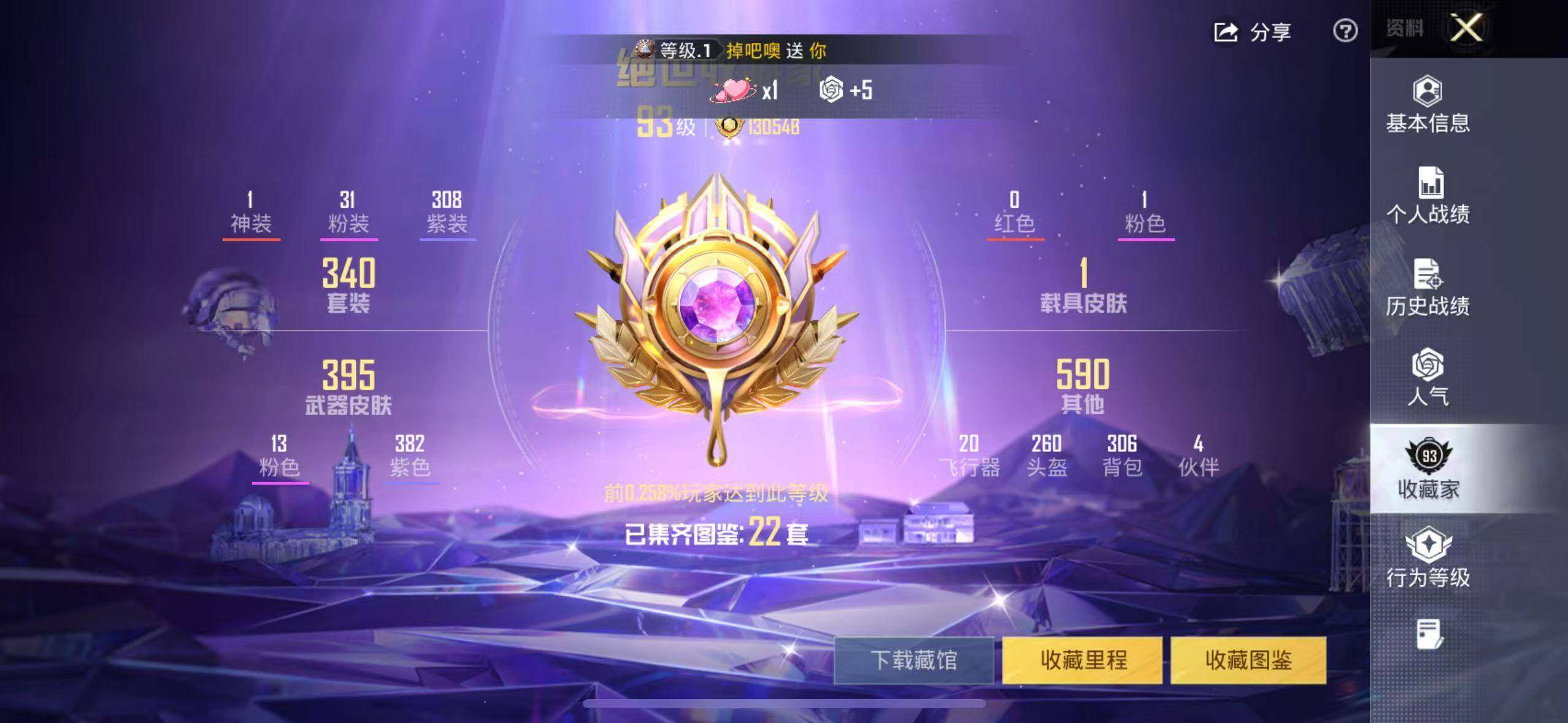 【粉色枪皮等级】:AKM-星际浪客(七级),SCAR-L-青春物语(七级),M416-五爪金龙(一级),M416-心之恋语(七级),M416-墨龙九天(三级),GROZA-精灵之光(三级),P90-沙丘之主(三级),Kar98K-巳巳如意(五级),M24-镜域双华(三级),Mk14-精灵梦叶罗丽(五级),莫辛纳甘-未来领航者(四级),DP-28-豹影疾电(五级),PKM-江南烟雨(五级)