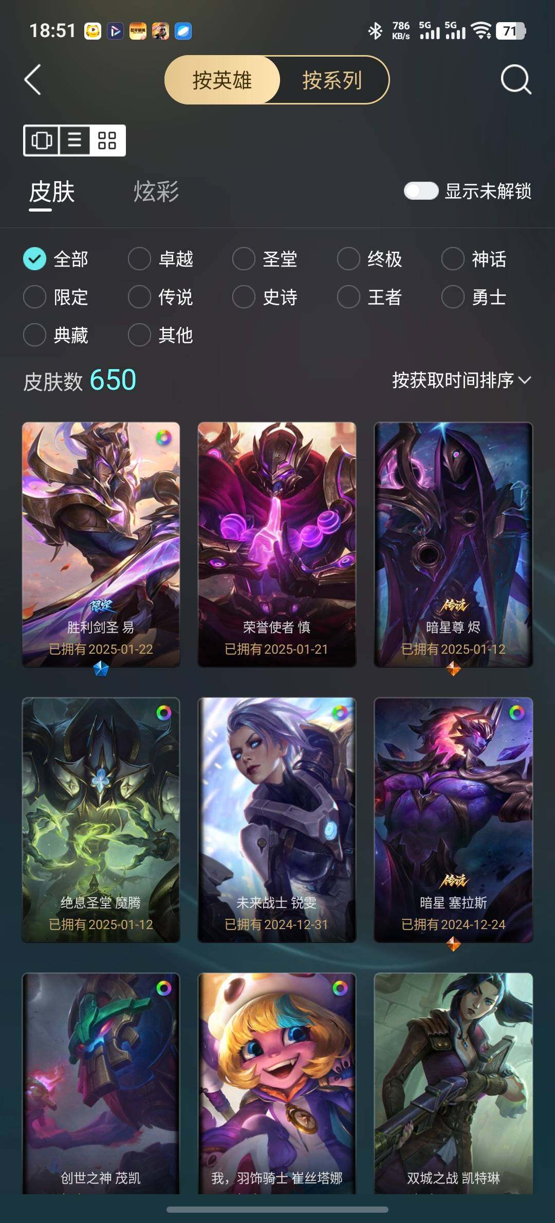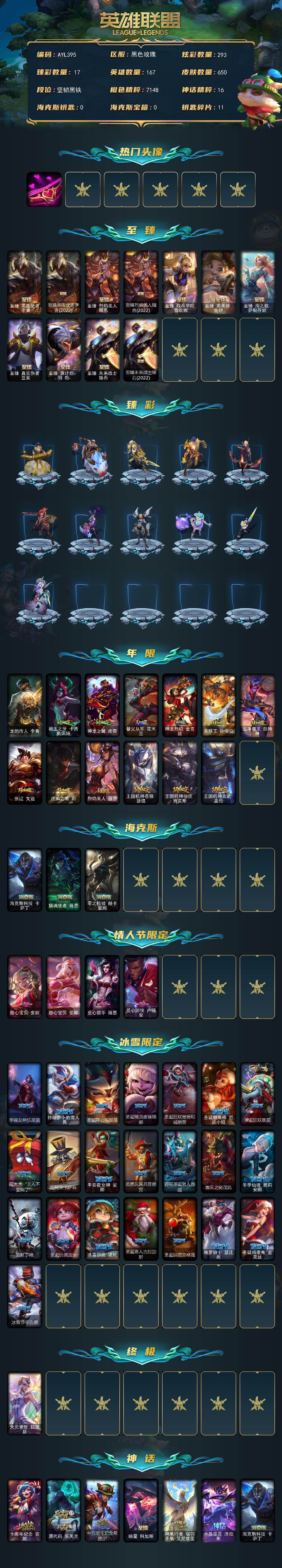 [15616254]【特价出售/店主推荐】未定级段位-167英雄-650皮肤-293炫彩-1终极-20神话-100限定-65传说-154史诗