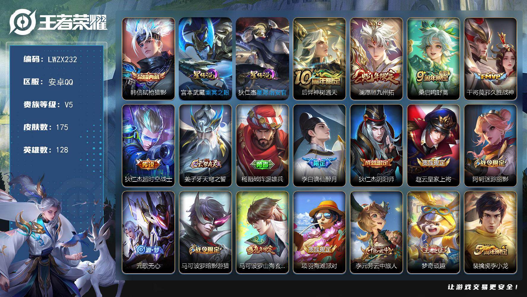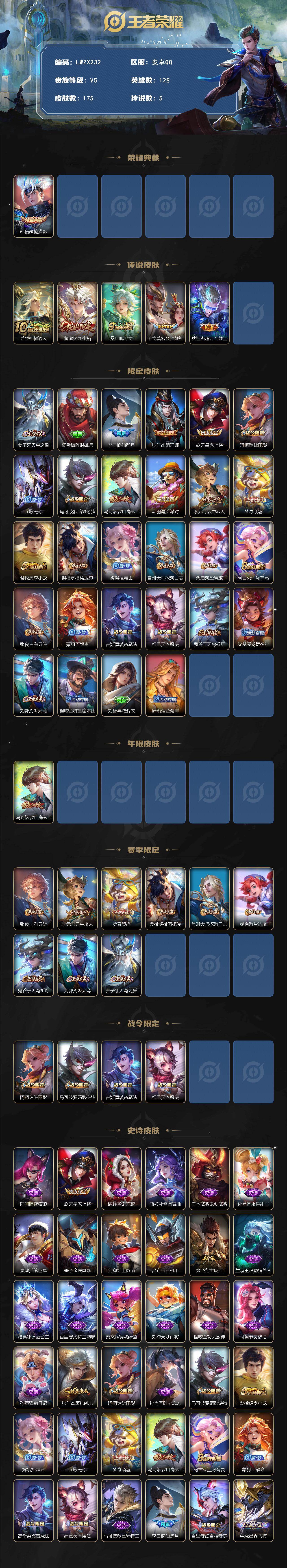 [15616502]安卓Q-V5-至尊星耀III段位-128英雄-175皮肤-1典藏皮肤-5传说-43史诗