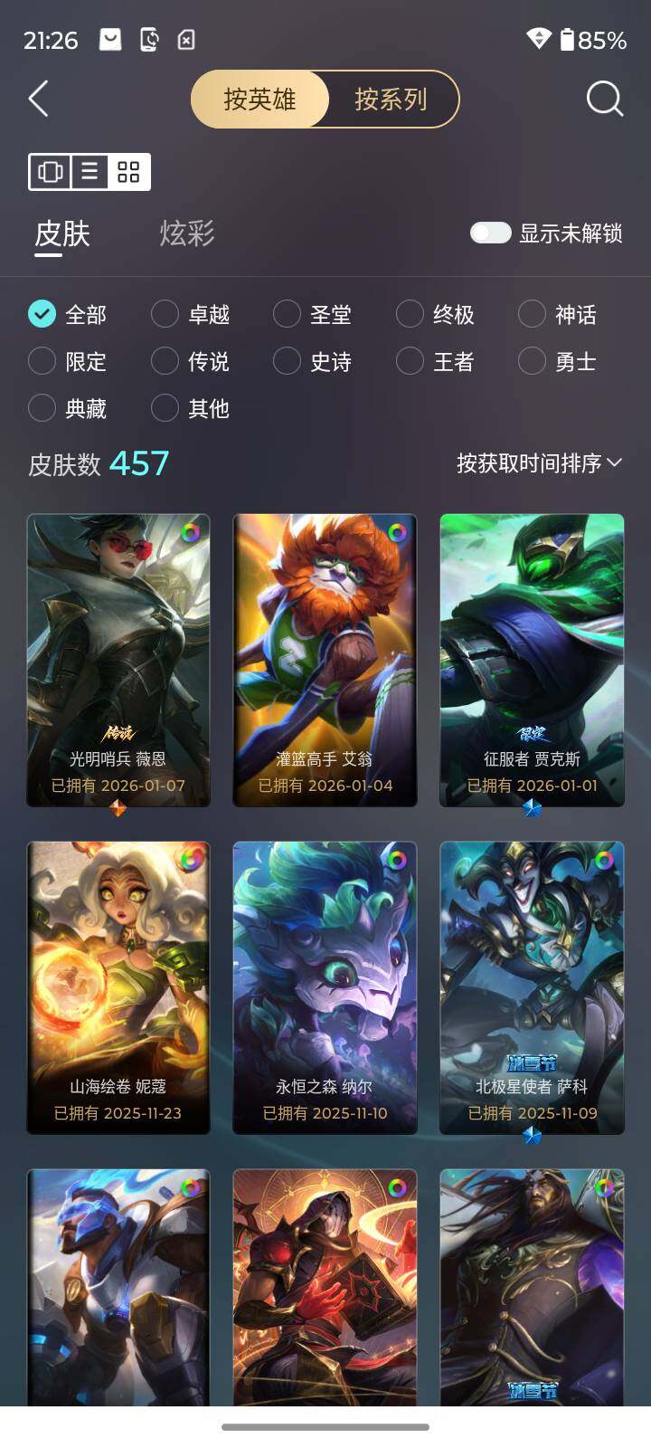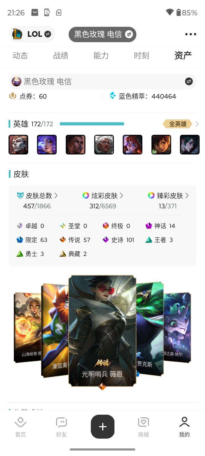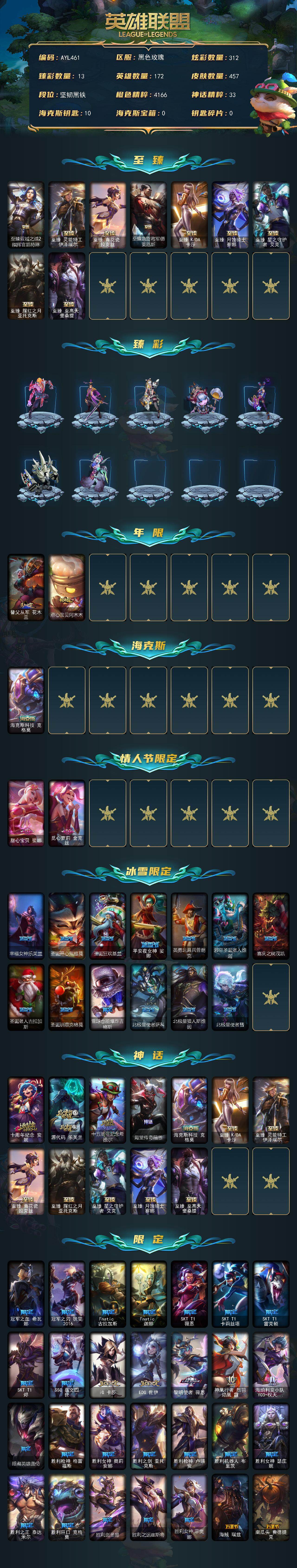 [15616519][店主推荐捡漏号]未定级段位-172英雄-457皮肤-312炫彩-0终极-14神话-63限定-57传说-101史诗