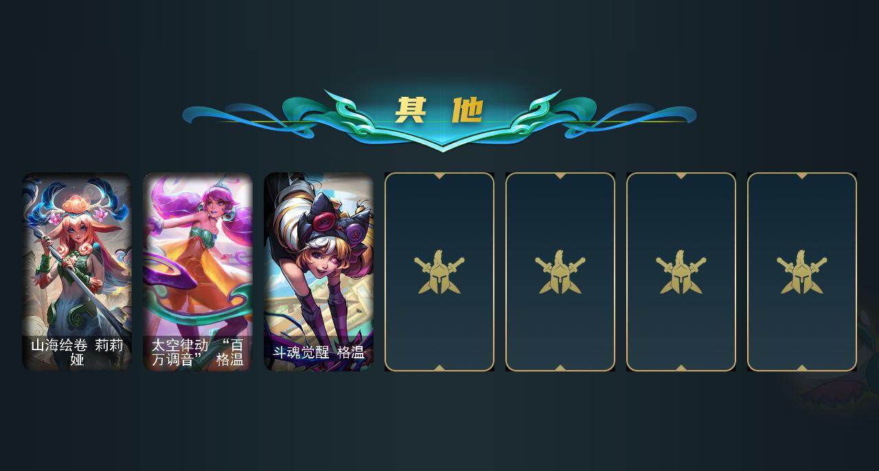 【神话皮肤】:十周年纪念安妮,源代码乐芙兰,十五周年纪念希维尔,殿堂传奇薇恩,海克斯科技克格莫,至臻至高天奎桑提,至臻KDA卡莎,至臻灵能特工伊泽瑞尔,至臻青花瓷拉克丝,至臻腥红之月亚托克斯,至臻星之守护者艾克,至臻月蚀骑士赛娜