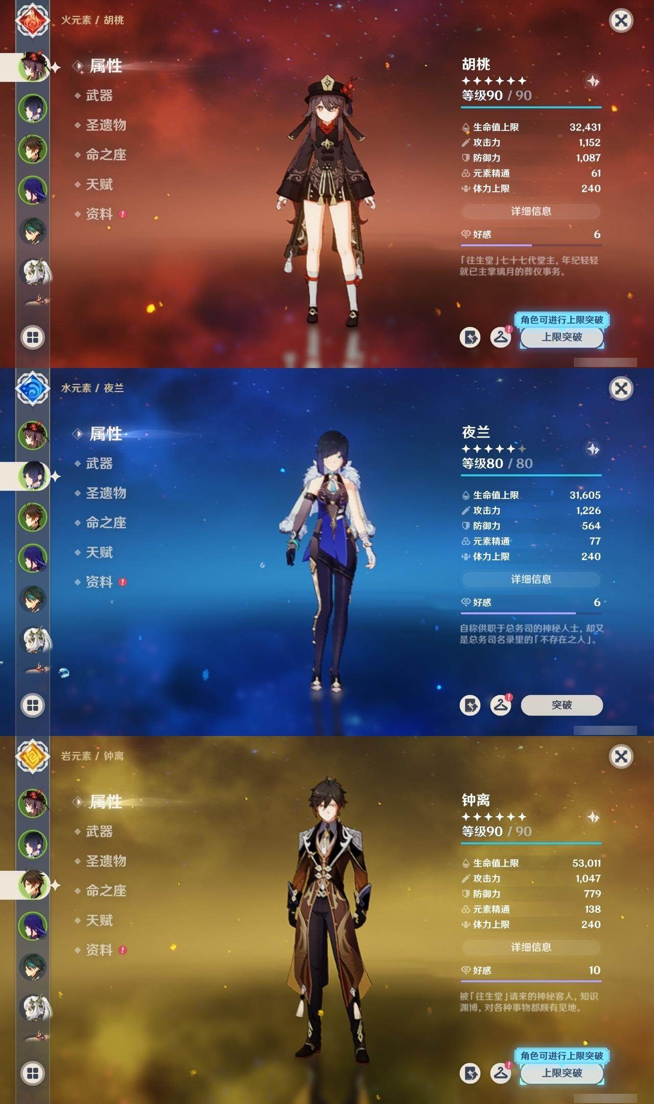 胡桃,钟离,雷电将军,魈,宵宫,迪卢克,刻晴,莫娜,琴