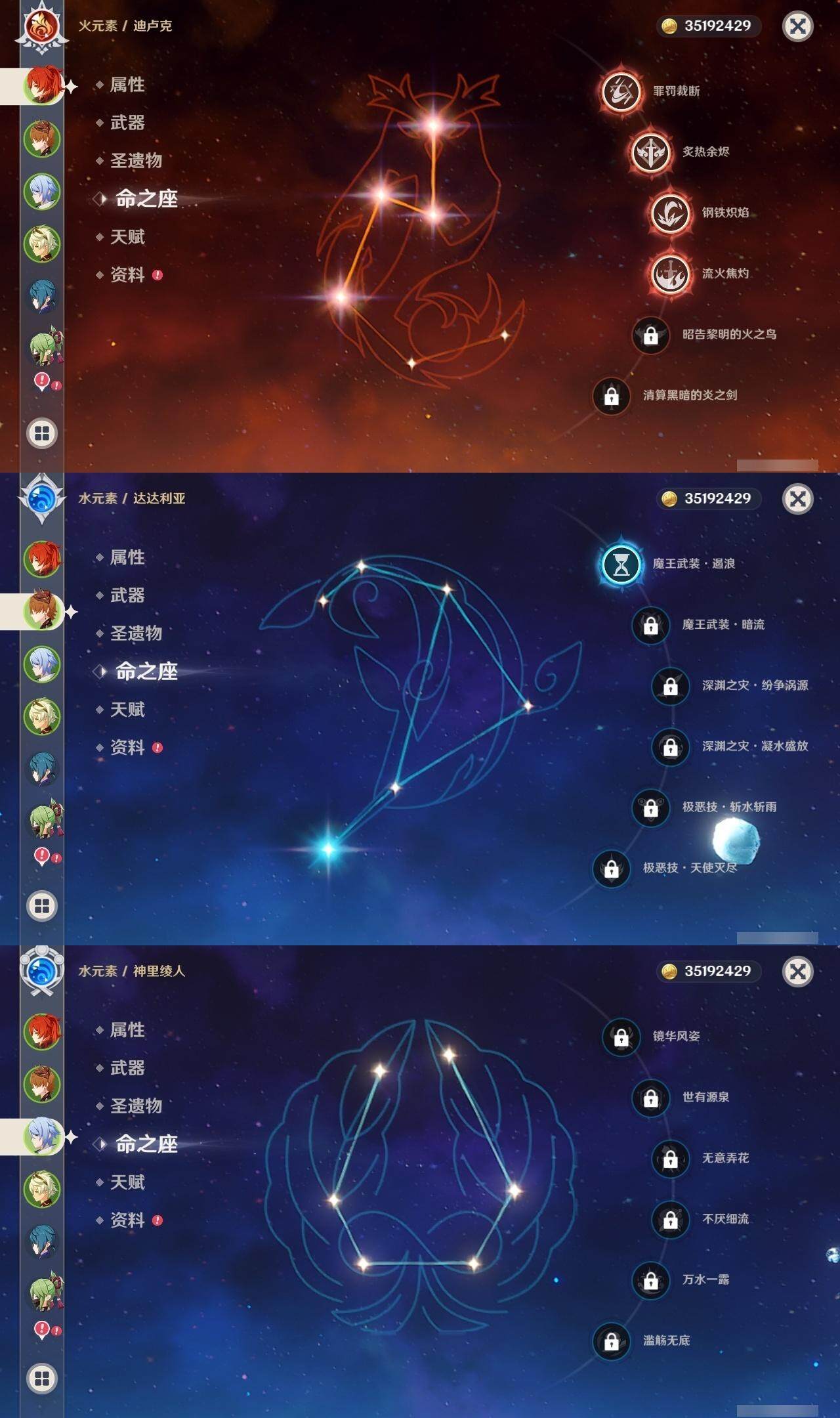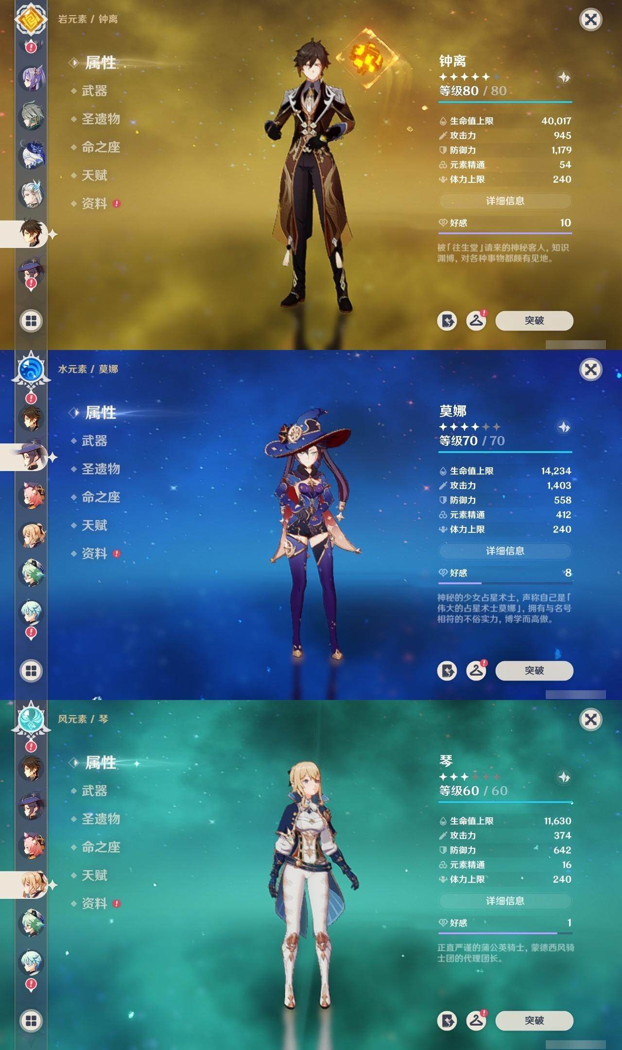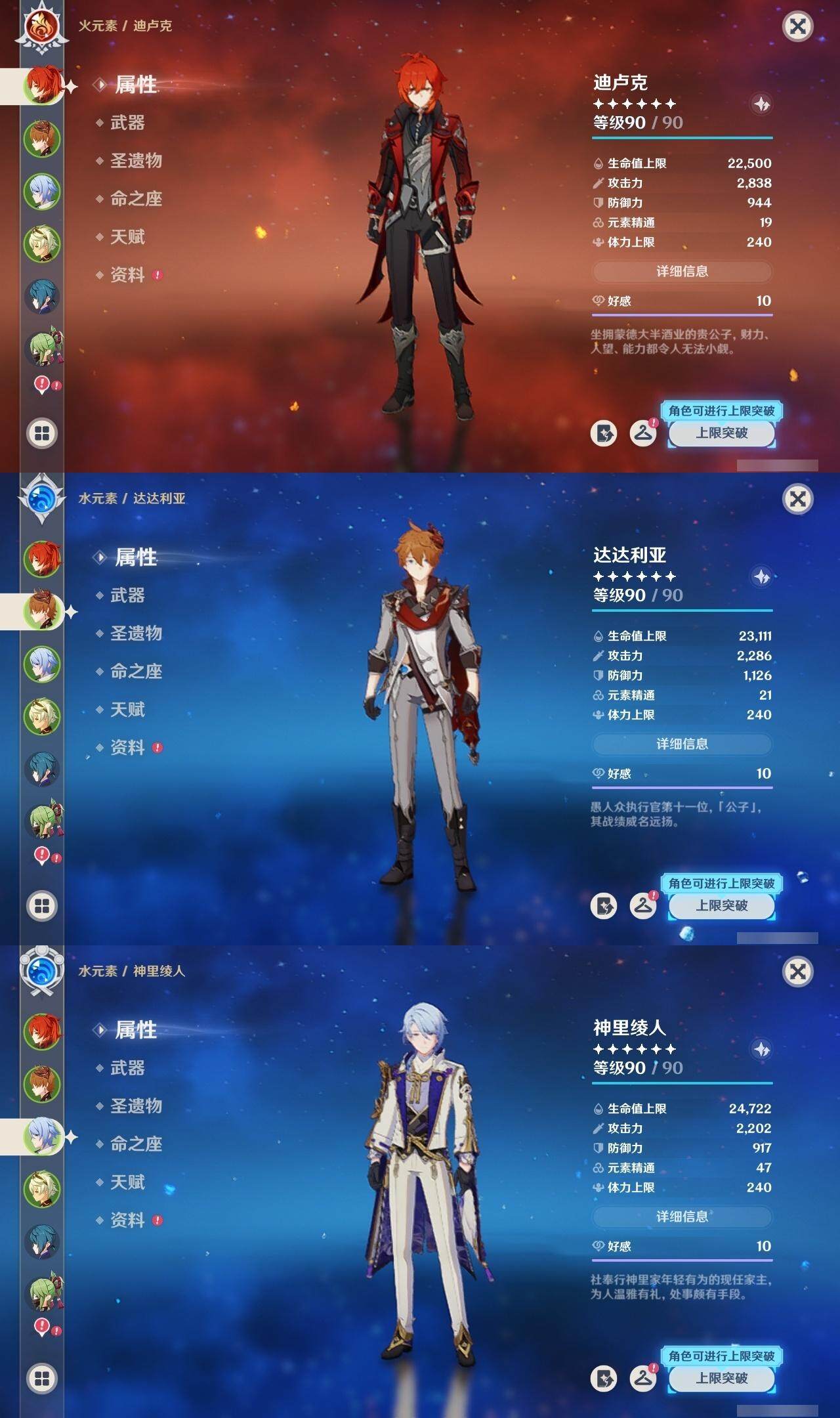 迪卢克,达达利亚,魈,神里凌华,刻晴,钟离,莫娜,琴,七七