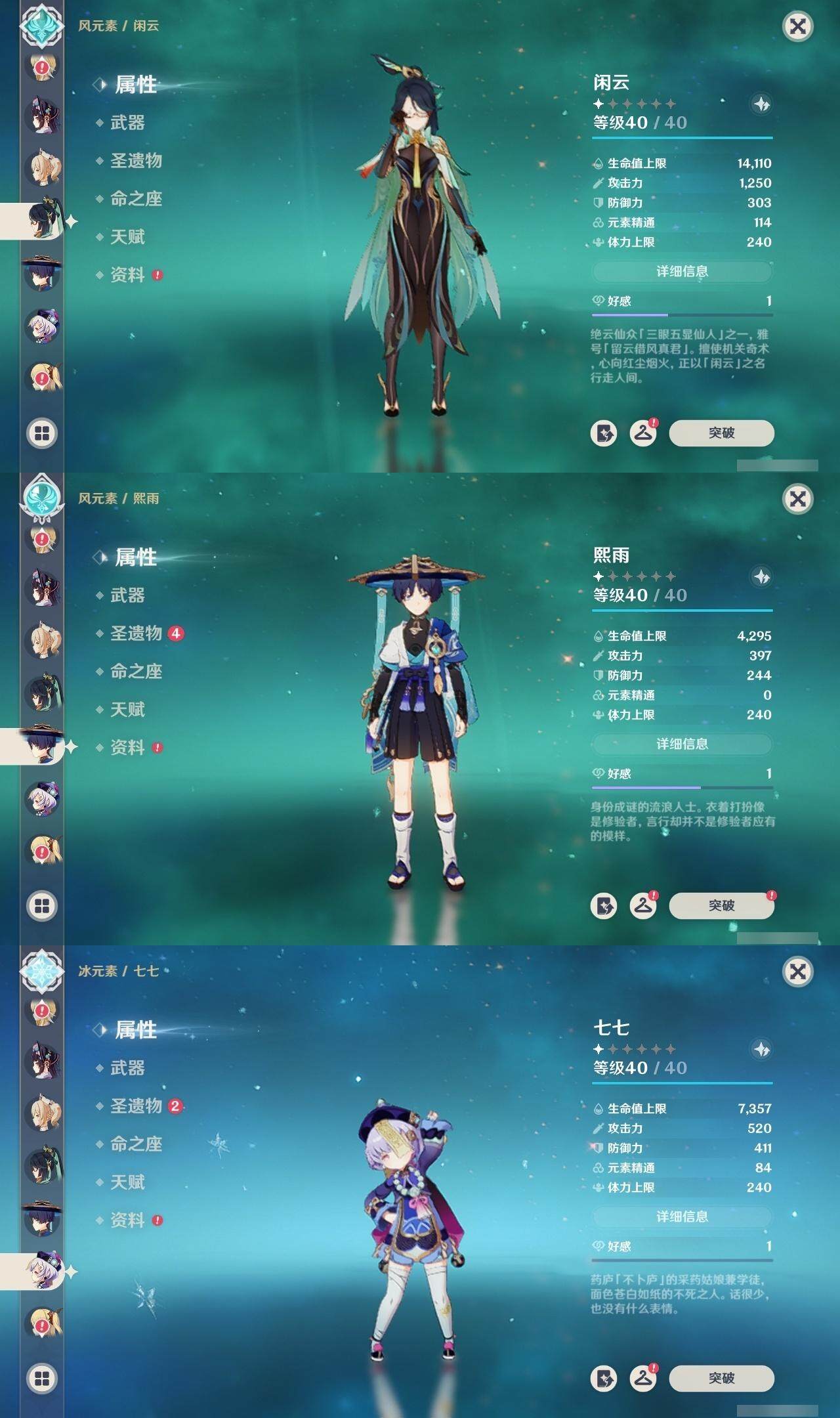 [15619317]59级/39黄/女主/15个五星角色/13个五星武器