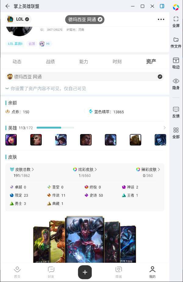 [15565968]【特价出售/店主推荐】黑铁段位-113英雄-191皮肤-1炫彩-0终极-2神话-23限定-11传说-50史诗